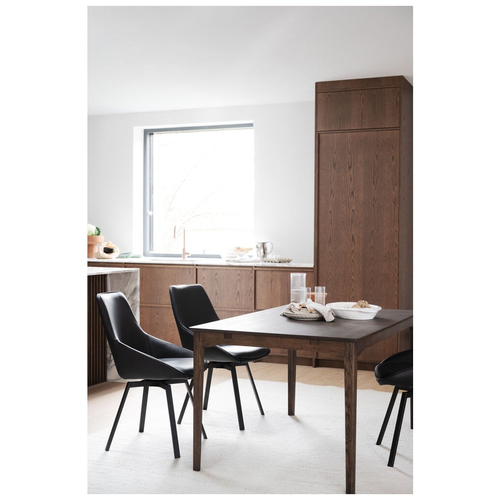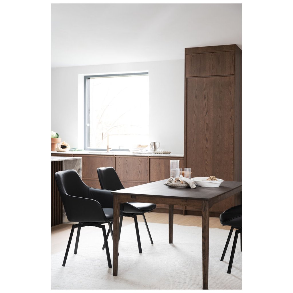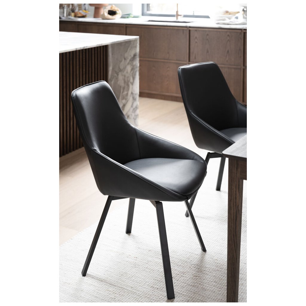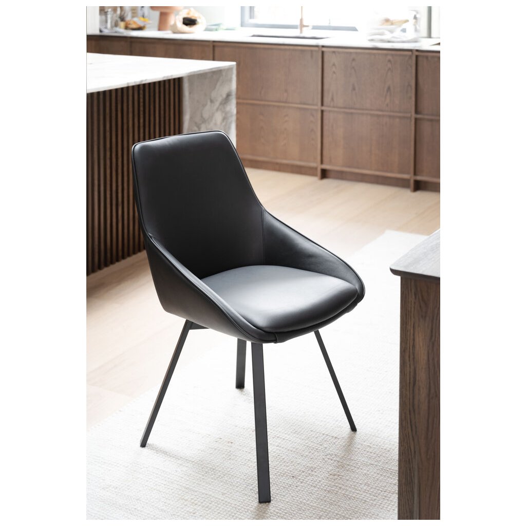 Designová jídelní židle ALISON od švédského designového výrobce nábytku ROWICO. ALISON je čalouněná židle v nádherné černé kůži s pohodlným sedákem s opěrkou. Čtyři černě lakované kovové nohy, zajišťují maximální nosnost a stabilitu židle. Židle je otočná o 360 stupňů. Pohodlí je tu na prvním místě.