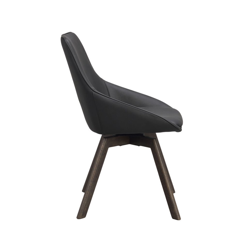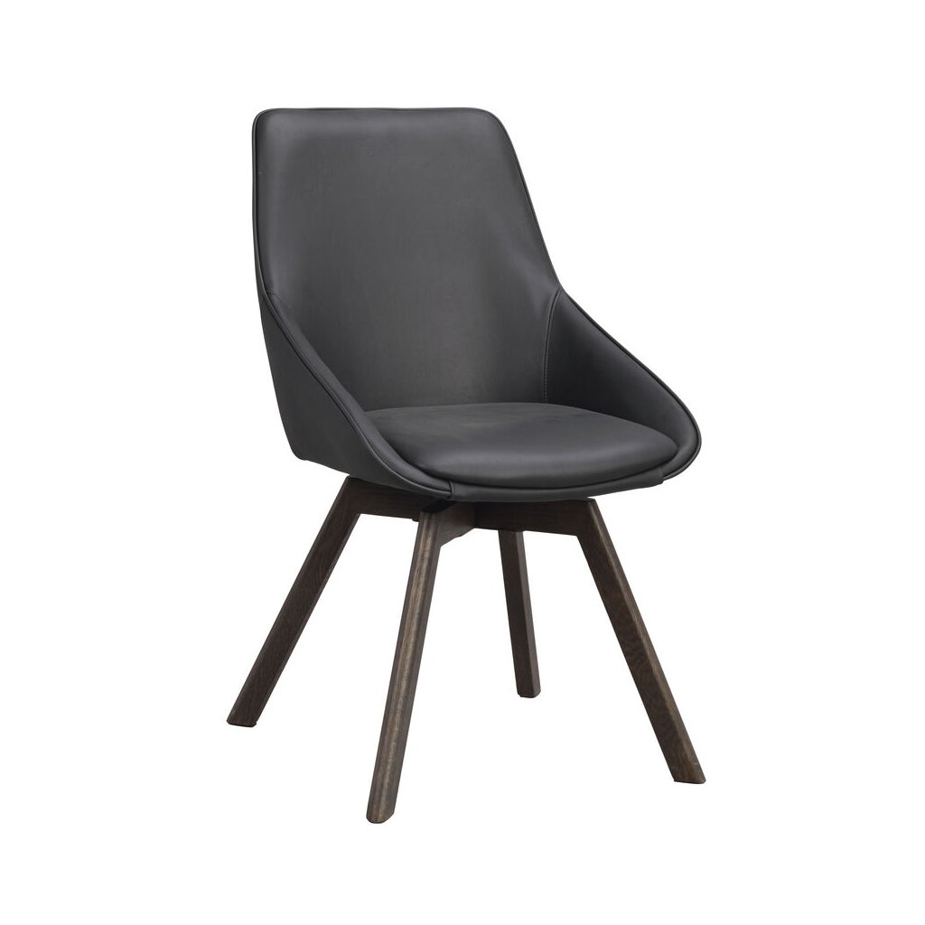 Designová jídelní židle ALISON od švédského designového výrobce nábytku ROWICO. ALISON je čalouněná židle v nádherné černé kůži s pohodlným sedákem s opěrkou. Čtyři dřevěné dubové nohy v tmavě hnědé barvě zajišťují maximální nosnost a stabilitu židle. Židle je otočná o 360 stupňů. Pohodlí je tu na prvním místě.