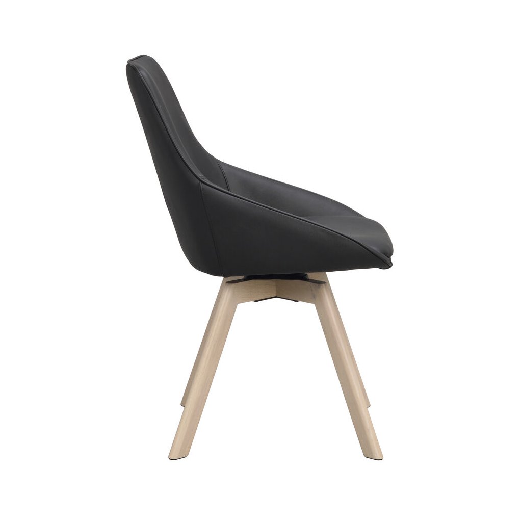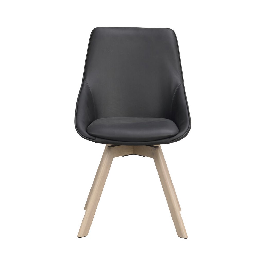 Designová jídelní židle ALISON od švédského designového výrobce nábytku ROWICO. ALISON je čalouněná židle v nádherné černé kůži s pohodlným sedákem s opěrkou. Čtyři dřevěné dubové nohy se světlým pigmentem zajišťují maximální nosnost a stabilitu židle. Židle je otočná o 360 stupňů. Pohodlí je tu na prvním místě.