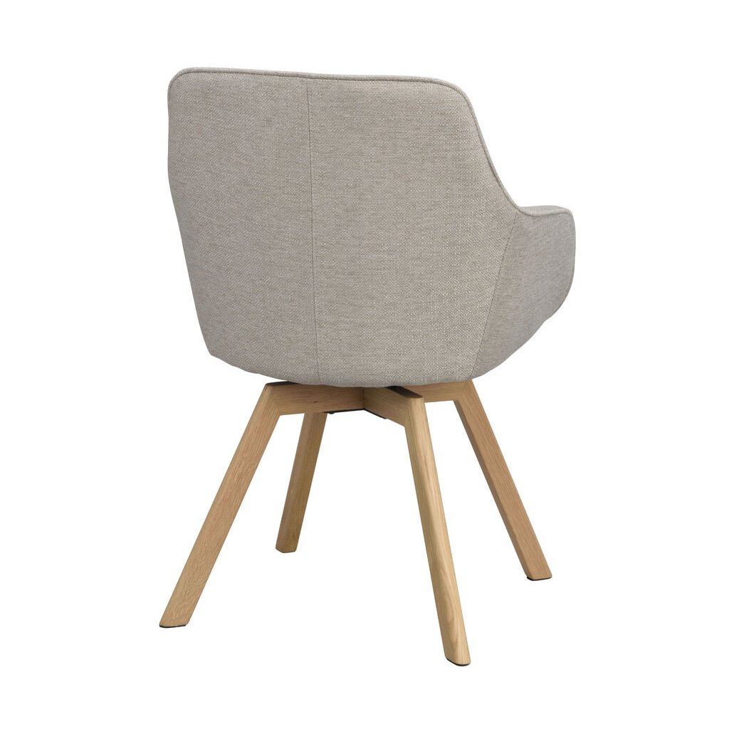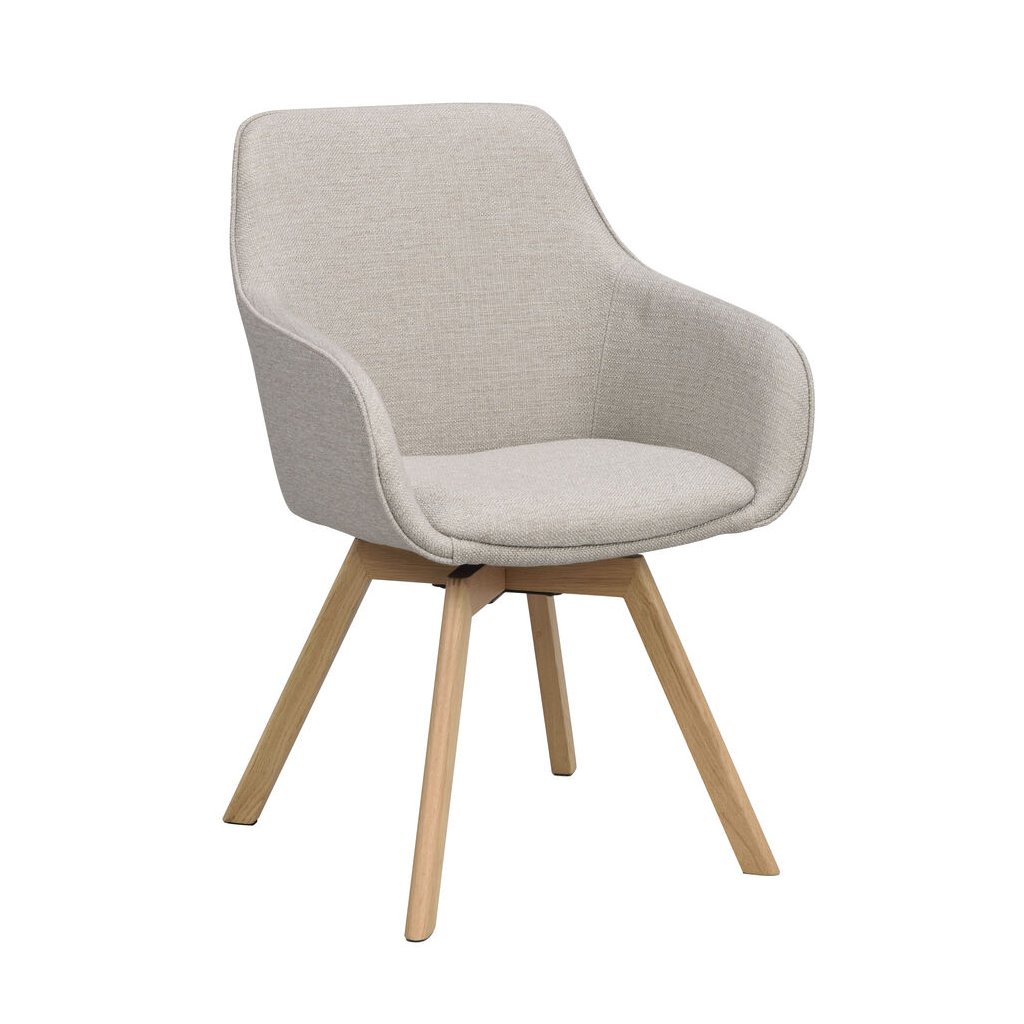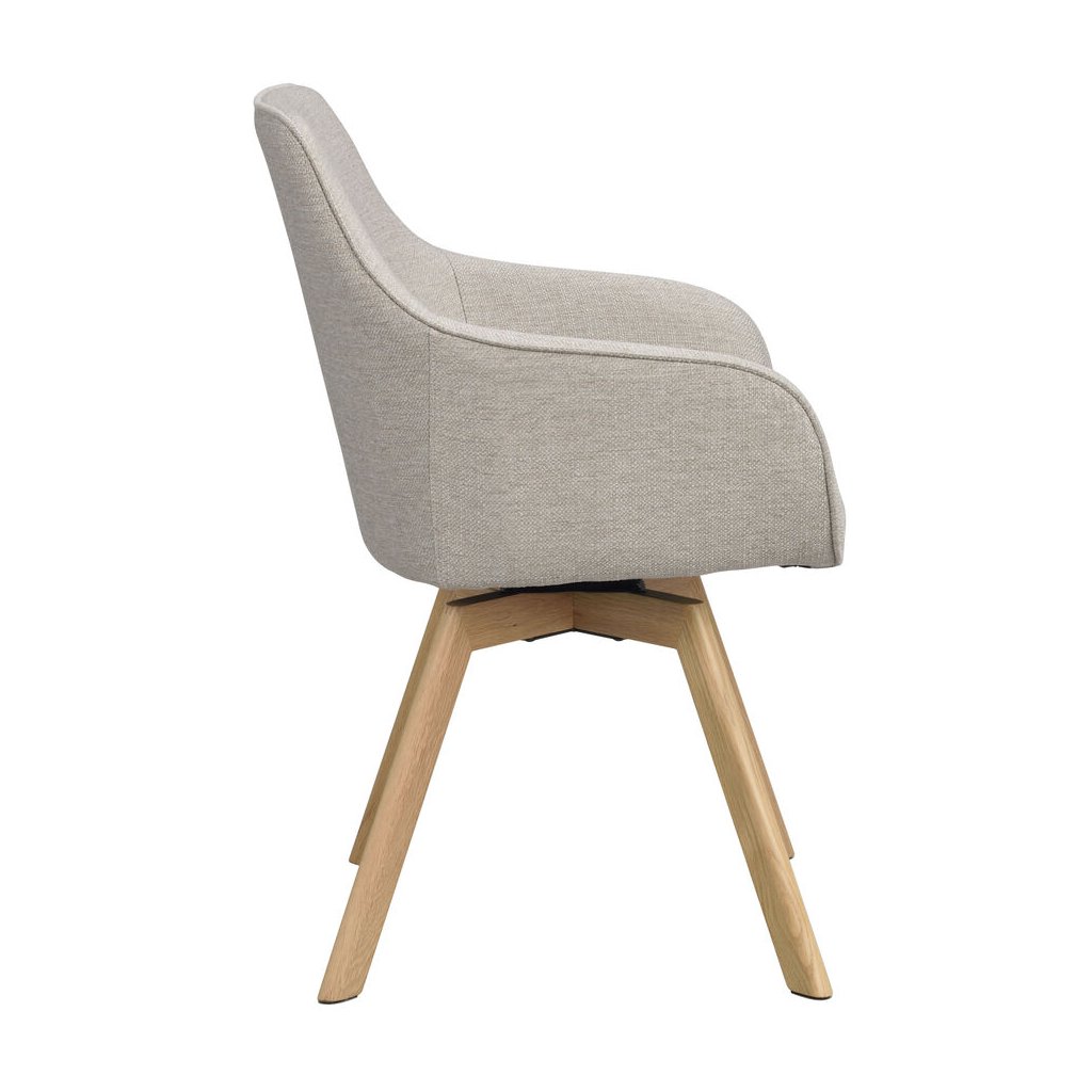 Designová jídelní židle ALISON od švédského designového výrobce nábytku ROWICO. ALISON je čalouněná židle v béžovém kabátu s pohodlným sedákem, opěrkou a 2 parádními područkami. Čtyři dubové dřevěné nohy zajišťují maximální nosnost a stabilitu židle. Židle je otočná o 360 stupňů. Pohodlí je tu na prvním místě.