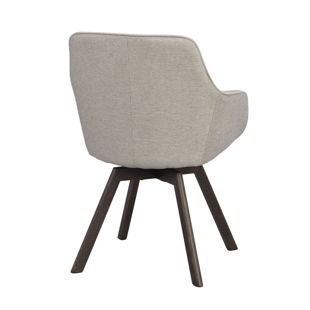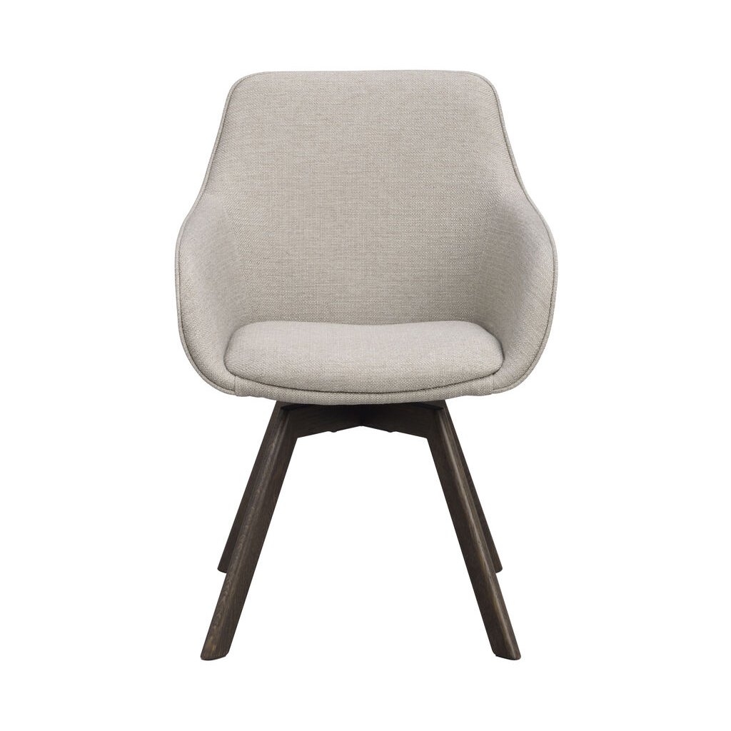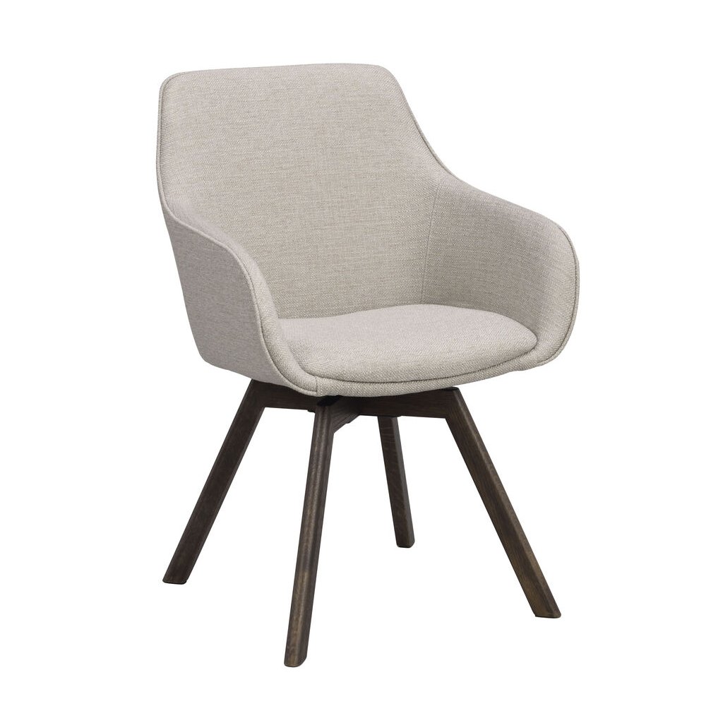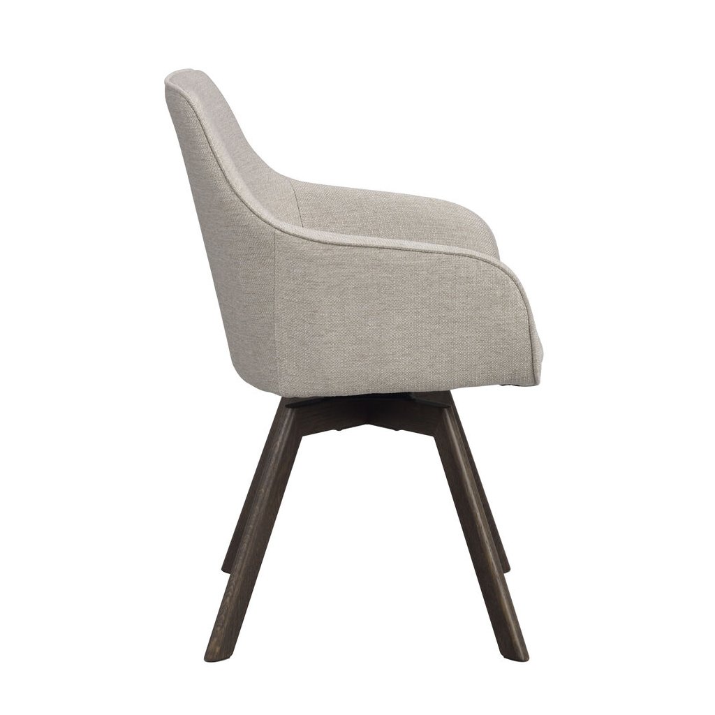 Designová jídelní židle ALISON od švédského designového výrobce nábytku ROWICO. ALISON je čalouněná židle v béžovém kabátu s pohodlným sedákem, opěrkou a dvěma cool područkami. Čtyři dřevěné dubové nohy v tmavě hnědém provedení, zajišťují maximální nosnost a stabilitu židle. Židle je otočná o 360 stupňů. Pohodlí je tu na prvním místě.