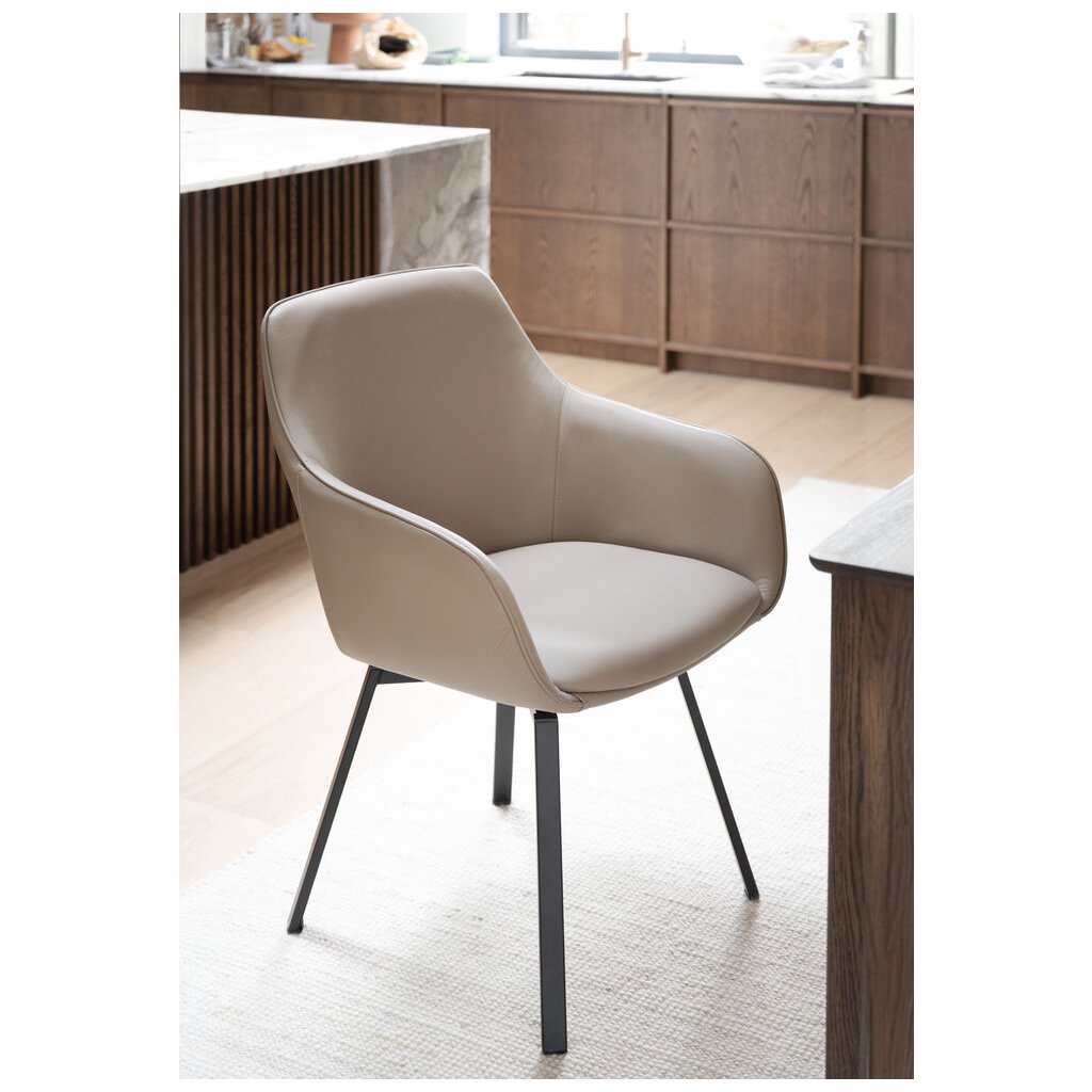 Jídelní židle ALISON s područkami béžová kůže černé nohy