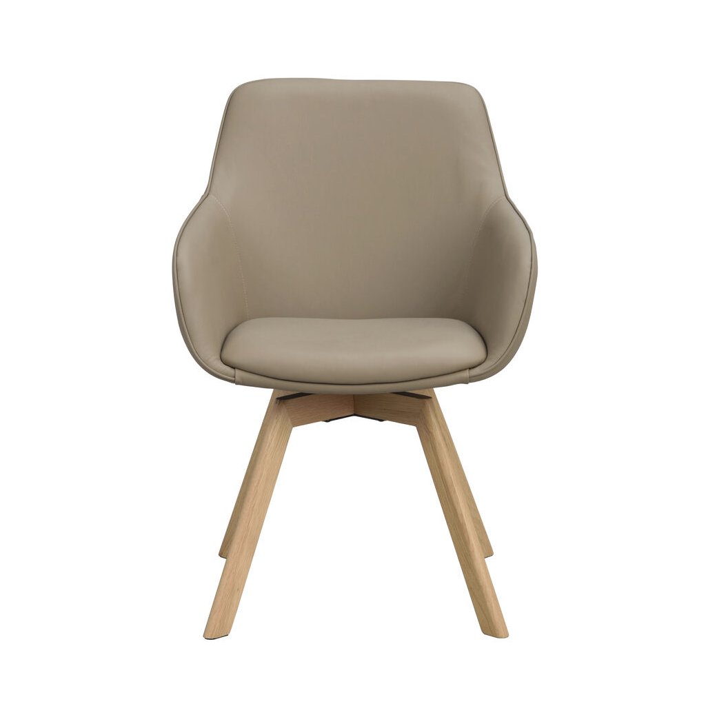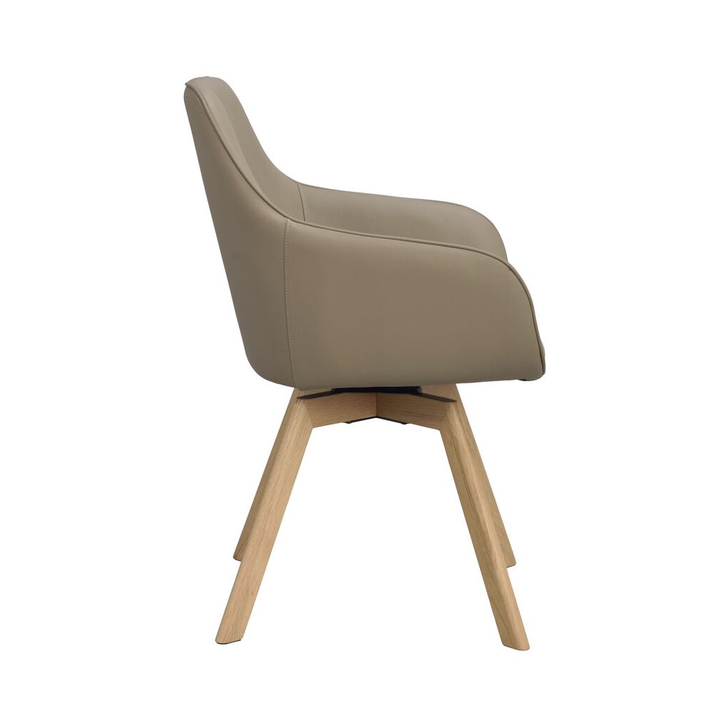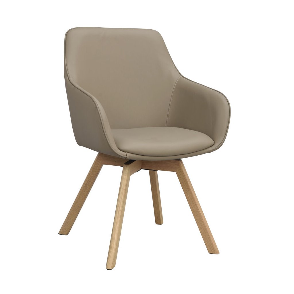 Jídelní židle ALISON s područkami béžová kůže dubové nohy