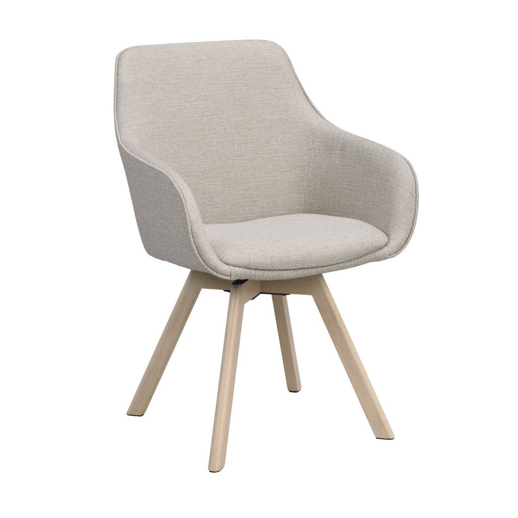 Designová jídelní židle ALISON od švédského designového výrobce nábytku ROWICO. ALISON je čalouněná židle v béžovém kabátu s pohodlným sedákem, opěrkou a 2 parádními područkami. Čtyři dubové dřevěné nohy ve světlém odstínu zajišťují maximální nosnost a stabilitu židle. Židle je otočná o 360 stupňů. Pohodlí je tu na prvním místě.
