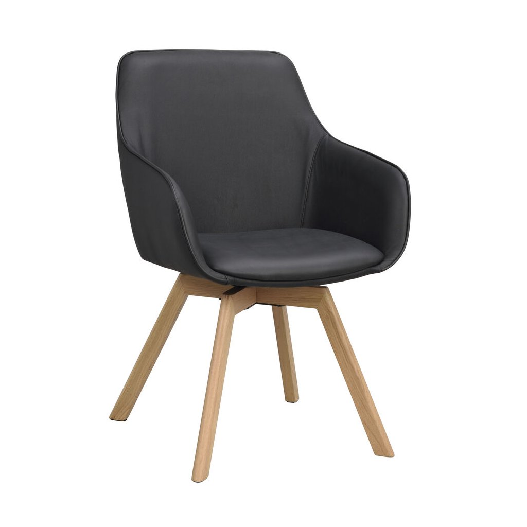 Jídelní židle ALISON s područkami černá kůže dubové nohy