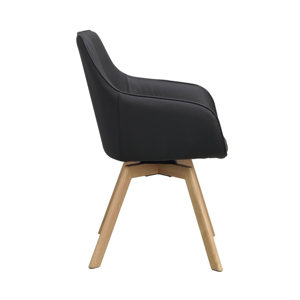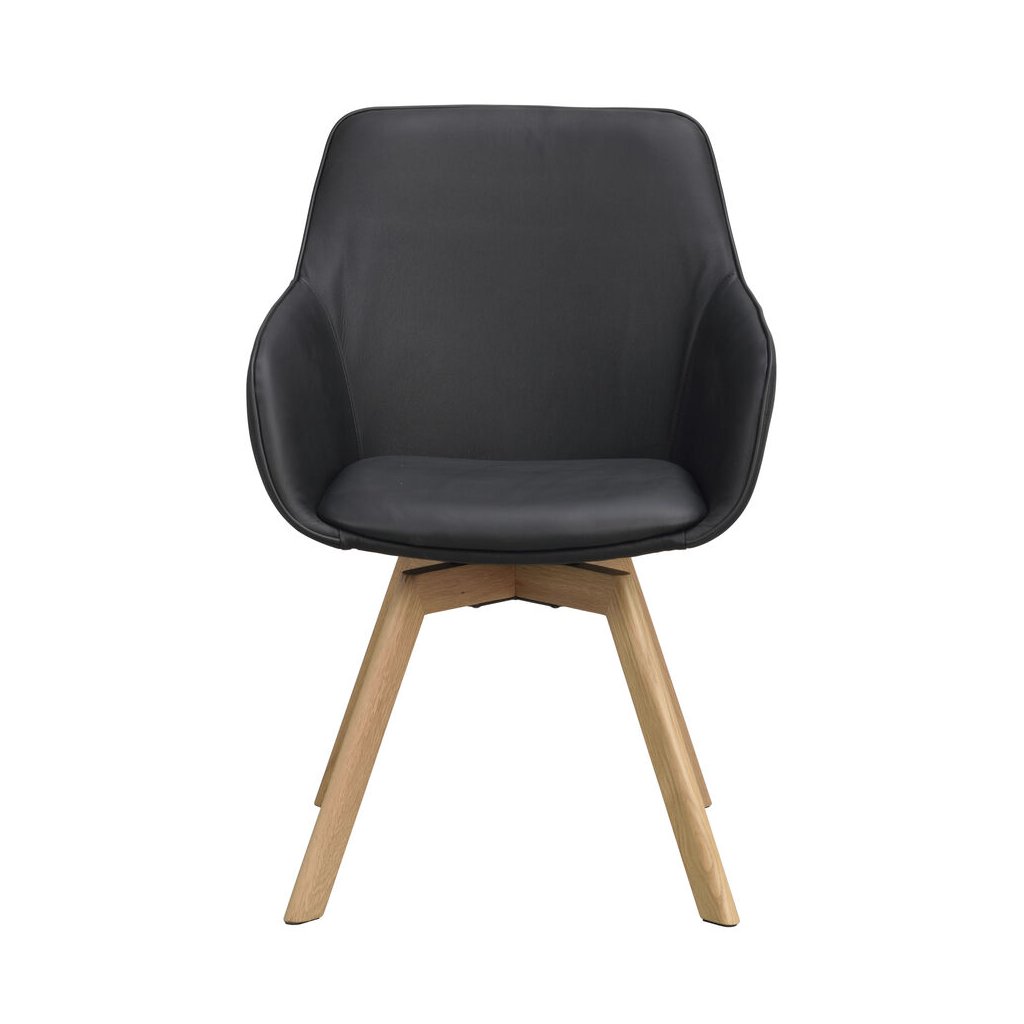 Designová jídelní židle ALISON od švédského designového výrobce nábytku ROWICO. ALISON je čalouněná židle v nádherné černé kůži s pohodlným sedákem, opěrkou a 2 parádními područkami. Čtyři dřevěné dubové nohy v přírodním odstínu zajišťují maximální nosnost a stabilitu židle. Židle je otočná o 360 stupňů. Pohodlí je tu na prvním místě.