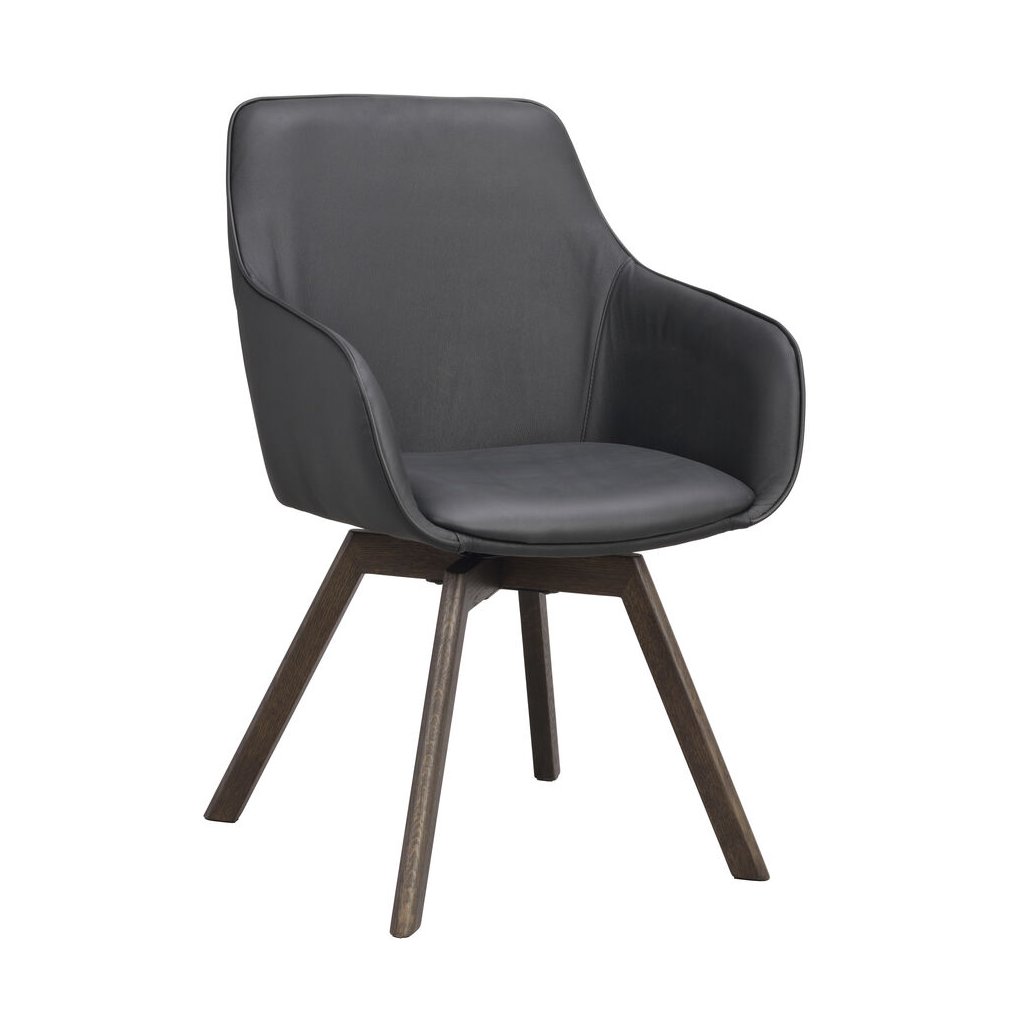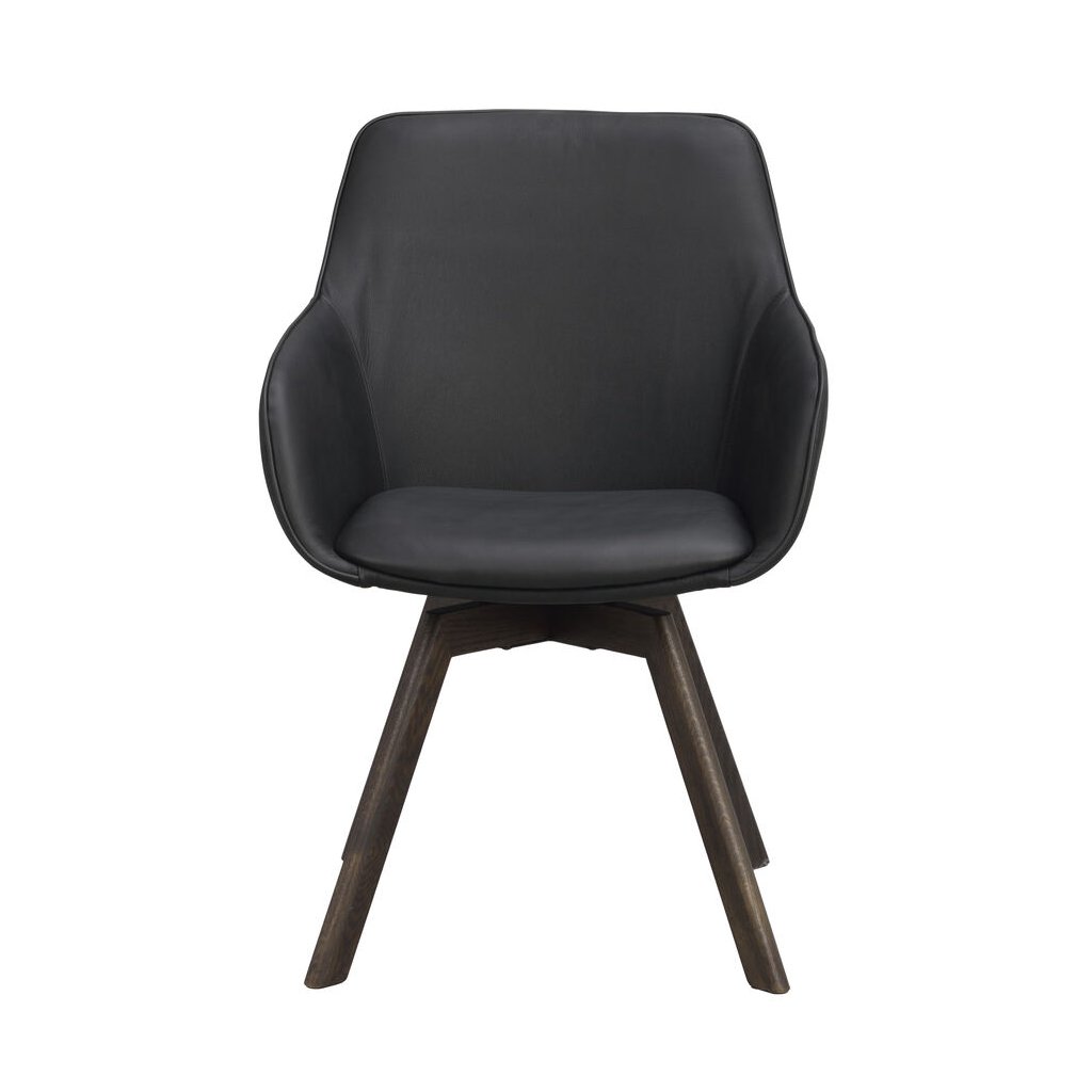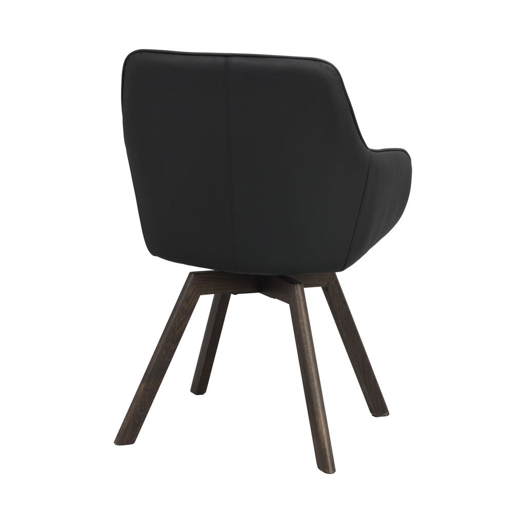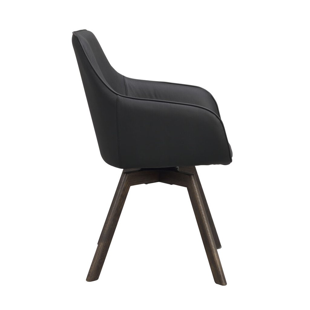 Designová jídelní židle ALISON od švédského designového výrobce nábytku ROWICO. ALISON je čalouněná židle v nádherné černé kůži s pohodlným sedákem, opěrkou a 2 parádními područkami. Čtyři dřevěné dubové nohy v tmavě hnědé barvě zajišťují maximální nosnost a stabilitu židle. Židle je otočná o 360 stupňů. Pohodlí je tu na prvním místě.