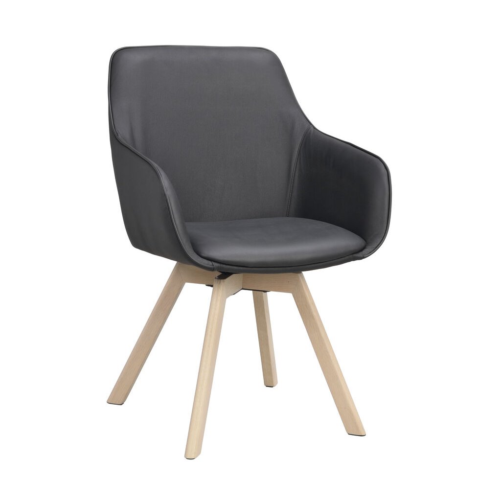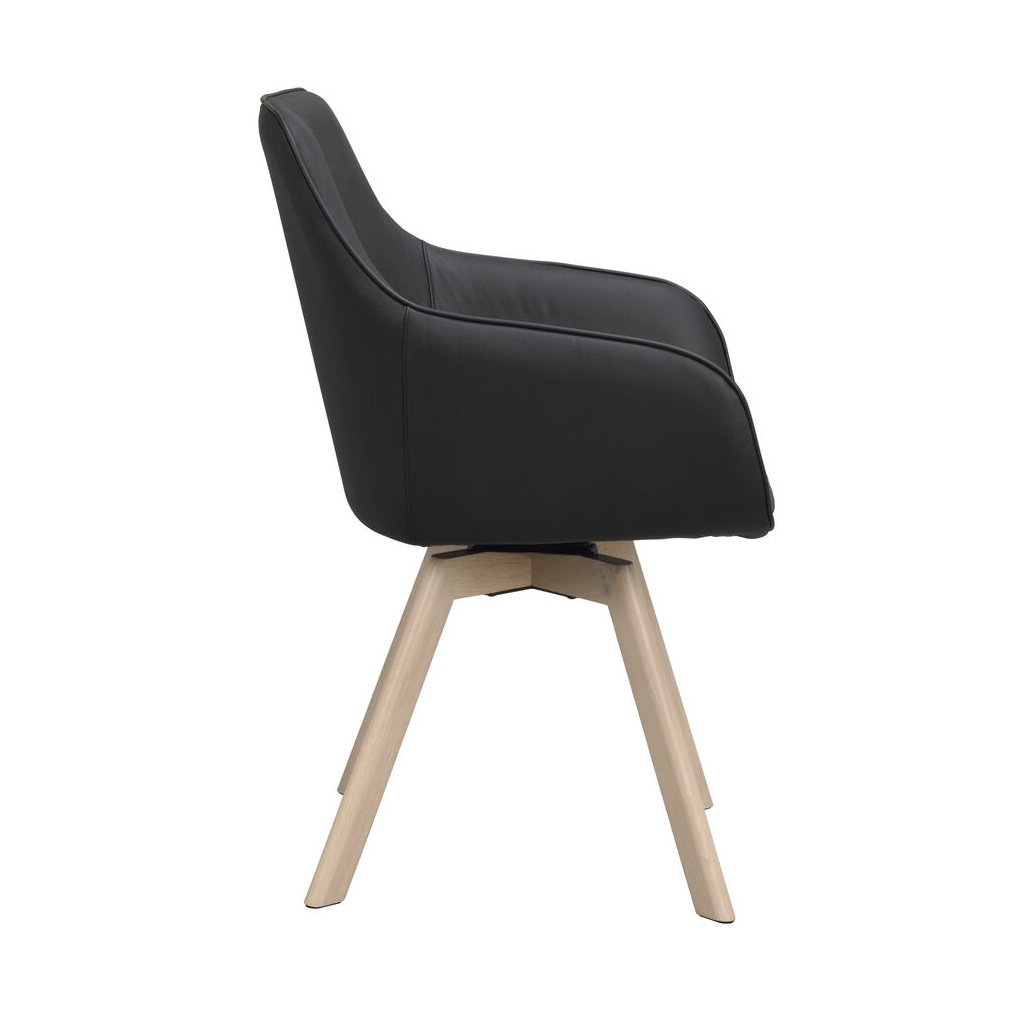 Jídelní židle ALISON s područkami černá kůže světlé nohy