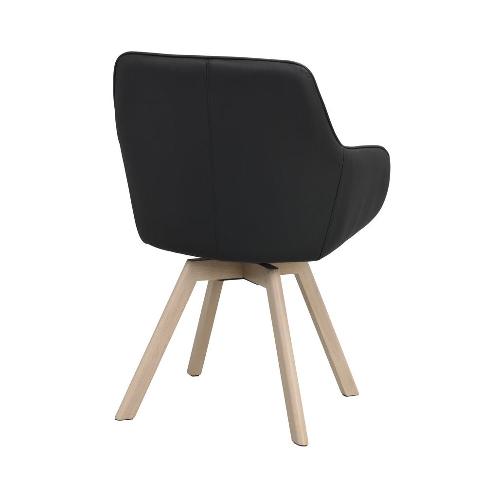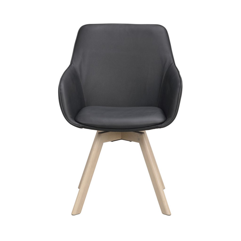 Designová jídelní židle ALISON od švédského designového výrobce nábytku ROWICO. ALISON je čalouněná židle v nádherné černé kůži s pohodlným sedákem, opěrkou a 2 parádními područkami. Čtyři dřevěné dubové nohy se světlým pigmentem zajišťují maximální nosnost a stabilitu židle. Židle je otočná o 360 stupňů. Pohodlí je tu na prvním místě.