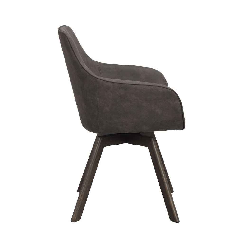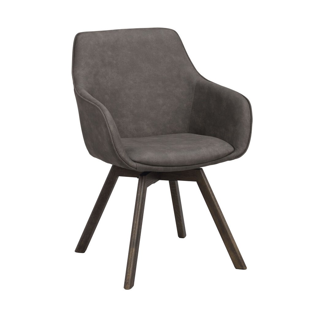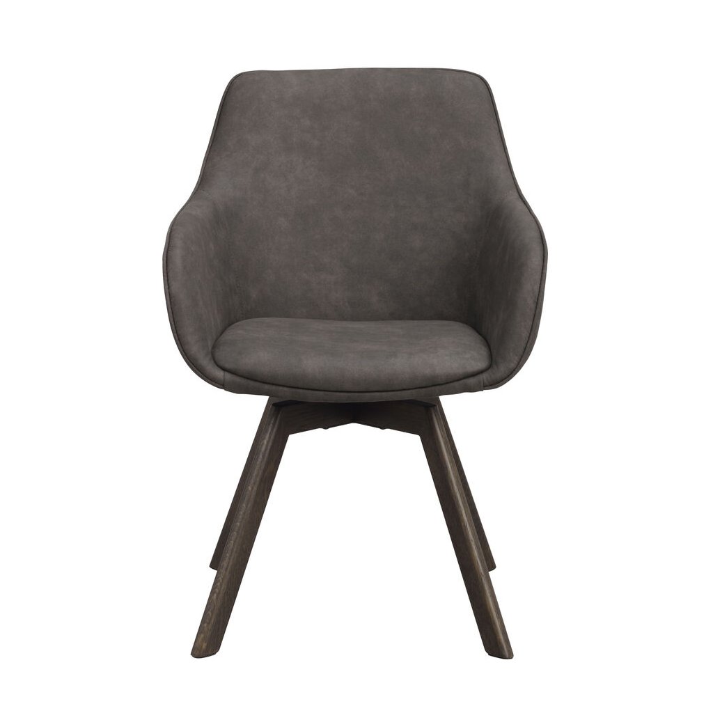 Designová jídelní židle ALISON od švédského designového výrobce nábytku ROWICO. ALISON je čalouněná židle v nádherné tmavě šedé umělé kůži s pohodlným sedákem, opěrkou a 2 příjemnými područkami. Čtyři dřevěné dubové nohy v tmavě hnědé barvě zajišťují maximální nosnost a stabilitu židle. Židle je otočná o 360 stupňů. Pohodlí je tu na prvním místě.