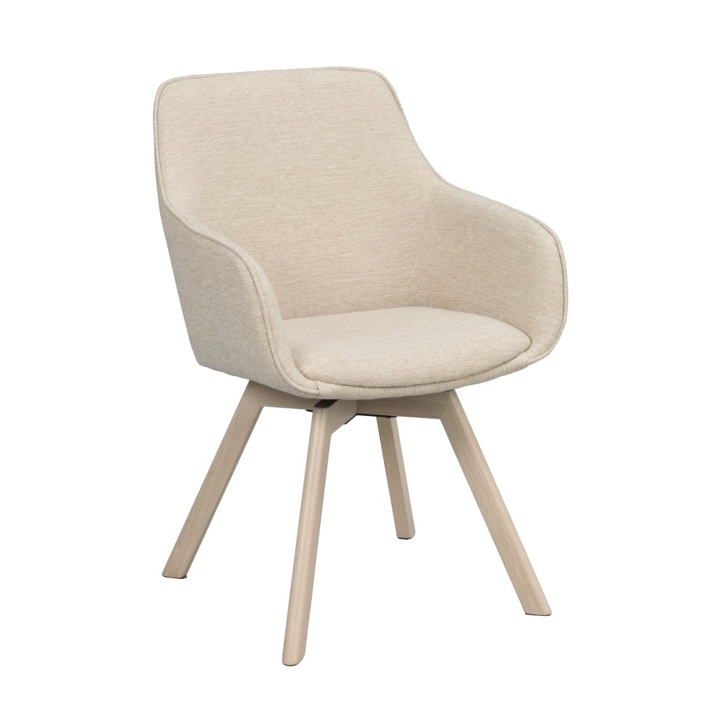 Jídelní židle ALISON s područkami světle béžová s bělenými dubovými nohami