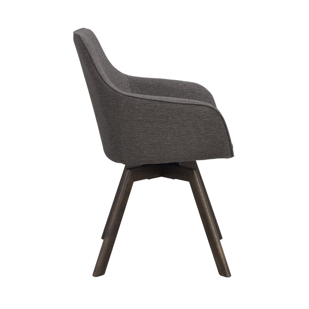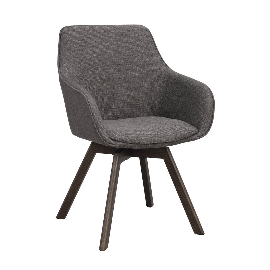 Designová jídelní židle ALISON od švédského designového výrobce nábytku ROWICO. ALISON je čalouněná židle v tmavě šedém kabátu s pohodlným sedákem, opěrkou a 2 pohodlnými područkami. Čtyři dřevěné dubové nohy v tmavě hnědém odstínu zajišťují maximální nosnost a stabilitu židle. Židle je otočná o 360 stupňů. Pohodlí je tu na prvním místě.