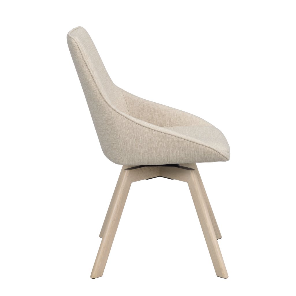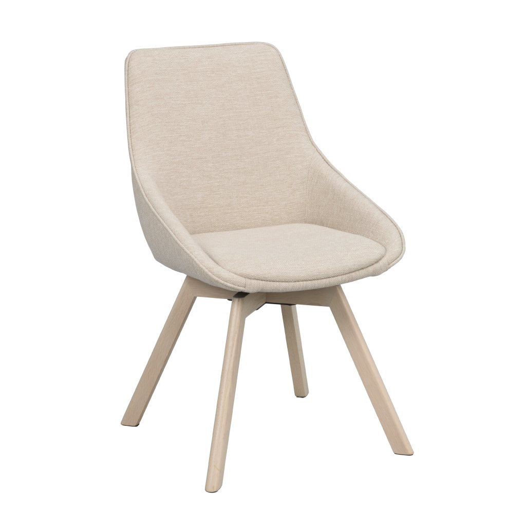 Designová jídelní židle ALISON od švédského designového výrobce nábytku ROWICO. ALISON je krásná čalouněná židle v provedení pohodlného sedáku s opěrkou ve světle béžové barvě. Čtyři nohy jsou vyrobené z běleného dubového dřeva a zajišťují maximální nosnost a stabilitu židle. Nohy jsou navíc otočné o 360 stupňů. Pohodlí je tu na prvním místě! Alison má certifikaci FSC a je k dispozici také v jiných barevných provedeních.
