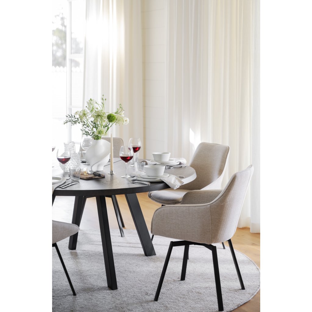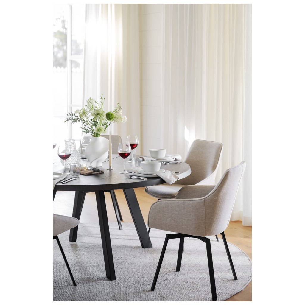 Designová jídelní židle ALISON od švédského designového výrobce nábytku ROWICO. ALISON je krásná čalouněná židle v provedení pohodlného sedáku s opěrkou ve světle béžové barvě. Čtyři nohy jsou vyrobené z černého kovu a zajišťují maximální nosnost a stabilitu židle. Nohy jsou navíc otočné o 360 stupňů. Pohodlí je tu na prvním místě! Alison je k dispozici také v jiných barevných provedeních.