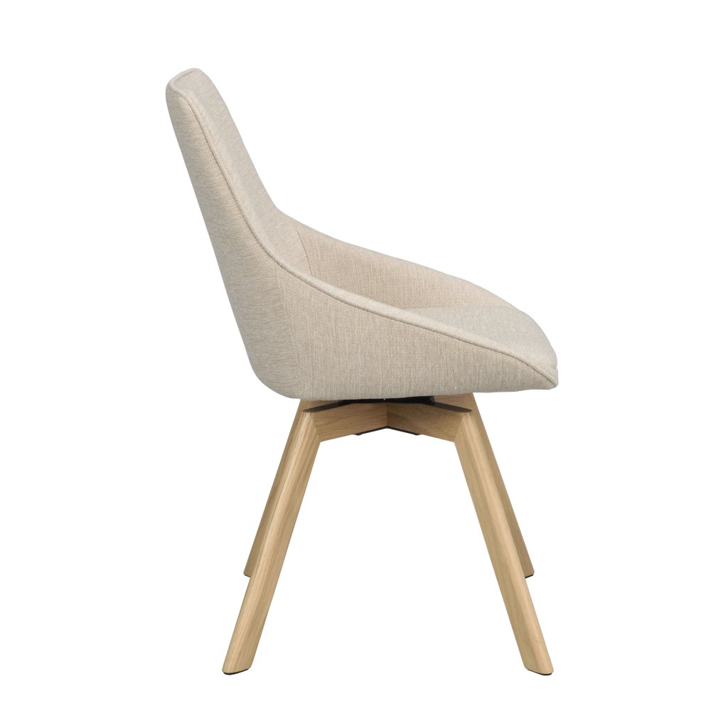 Designová jídelní židle ALISON od švédského designového výrobce nábytku ROWICO. ALISON je krásná čalouněná židle v provedení pohodlného sedáku s opěrkou ve světle béžové barvě. Čtyři nohy jsou vyrobené z lakovaného dubového dřeva a zajišťují maximální nosnost a stabilitu židle. Nohy jsou navíc otočné o 360 stupňů. Pohodlí je tu na prvním místě! Alison má certifikaci FSC a je k dispozici také v jiných barevných provedeních.