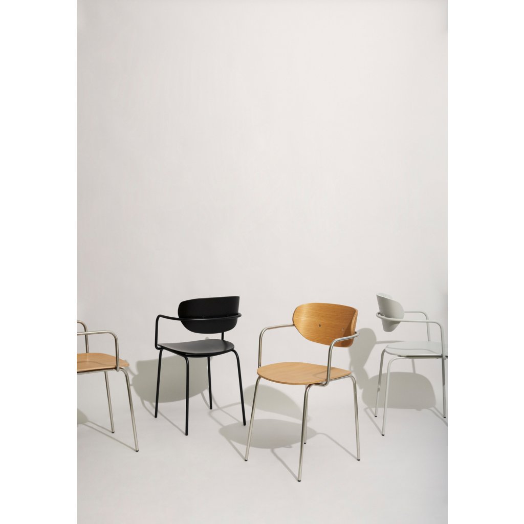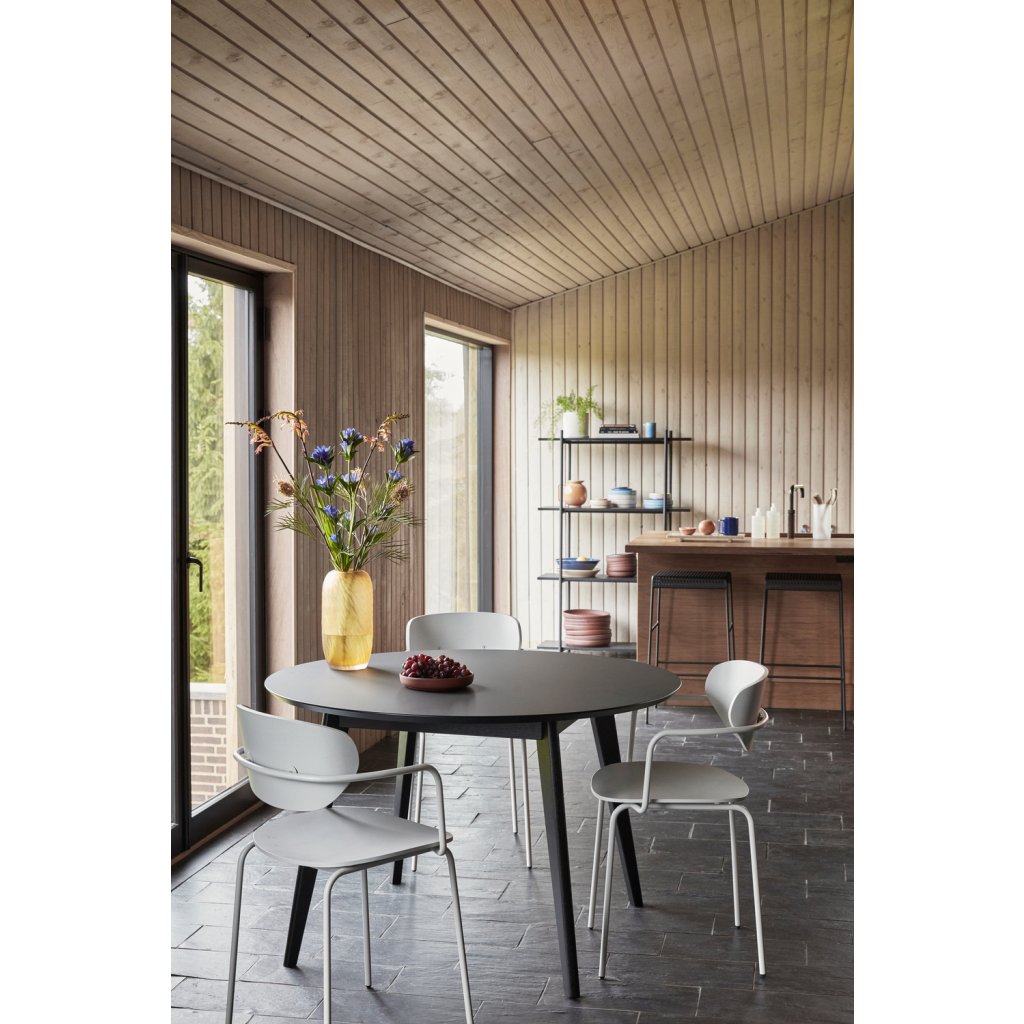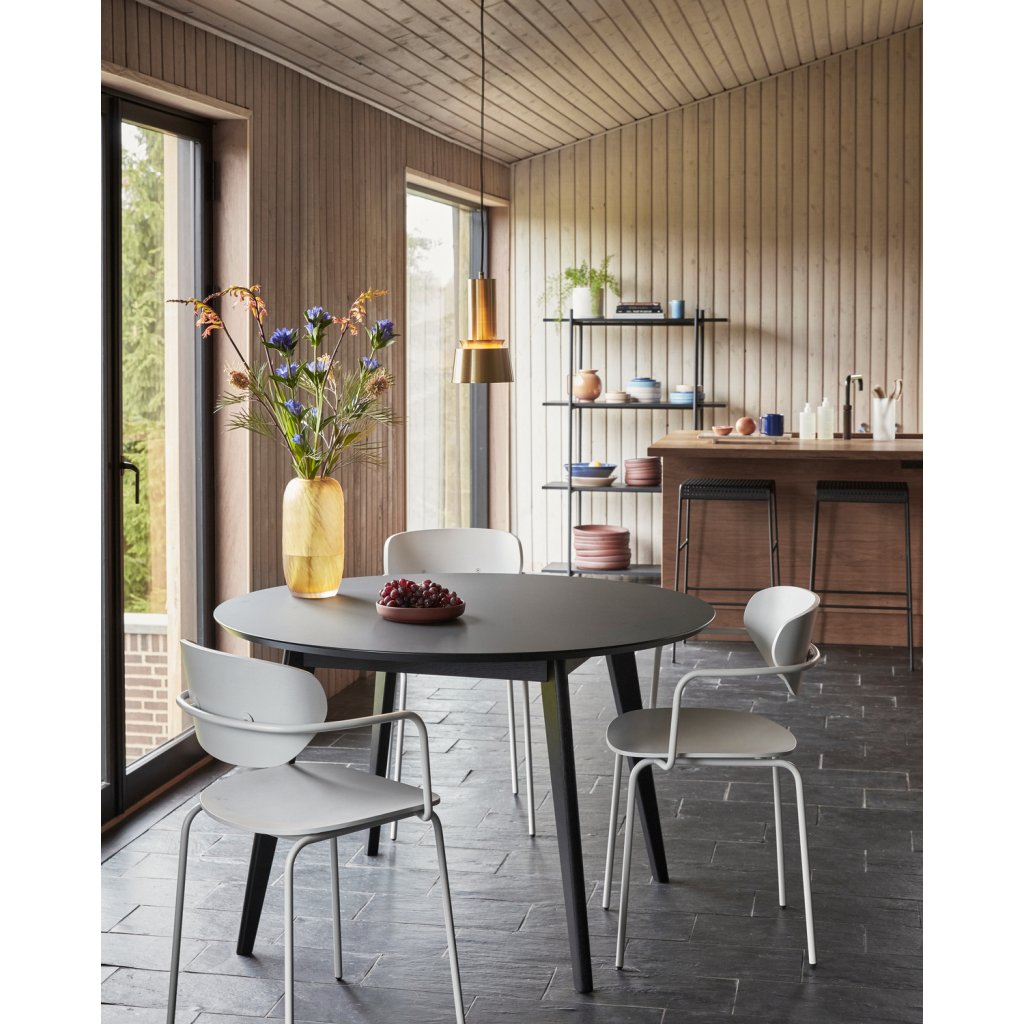 Designová jídelní židle ARCH od dánské značky skandinávského nábytku HÜBSCH. Jídelní židle OBLIQUE je typickým produktem dánského designu a její zjev je téměř ikonický. Kombinuje kovovou konstrukci a sedák a opěrku z překližky, to vše ve světle šedé barvě. K dostání i v dalších barvách. Ke komfortu přispívají boční područky, jež jsou součástí kovové konstrukce.