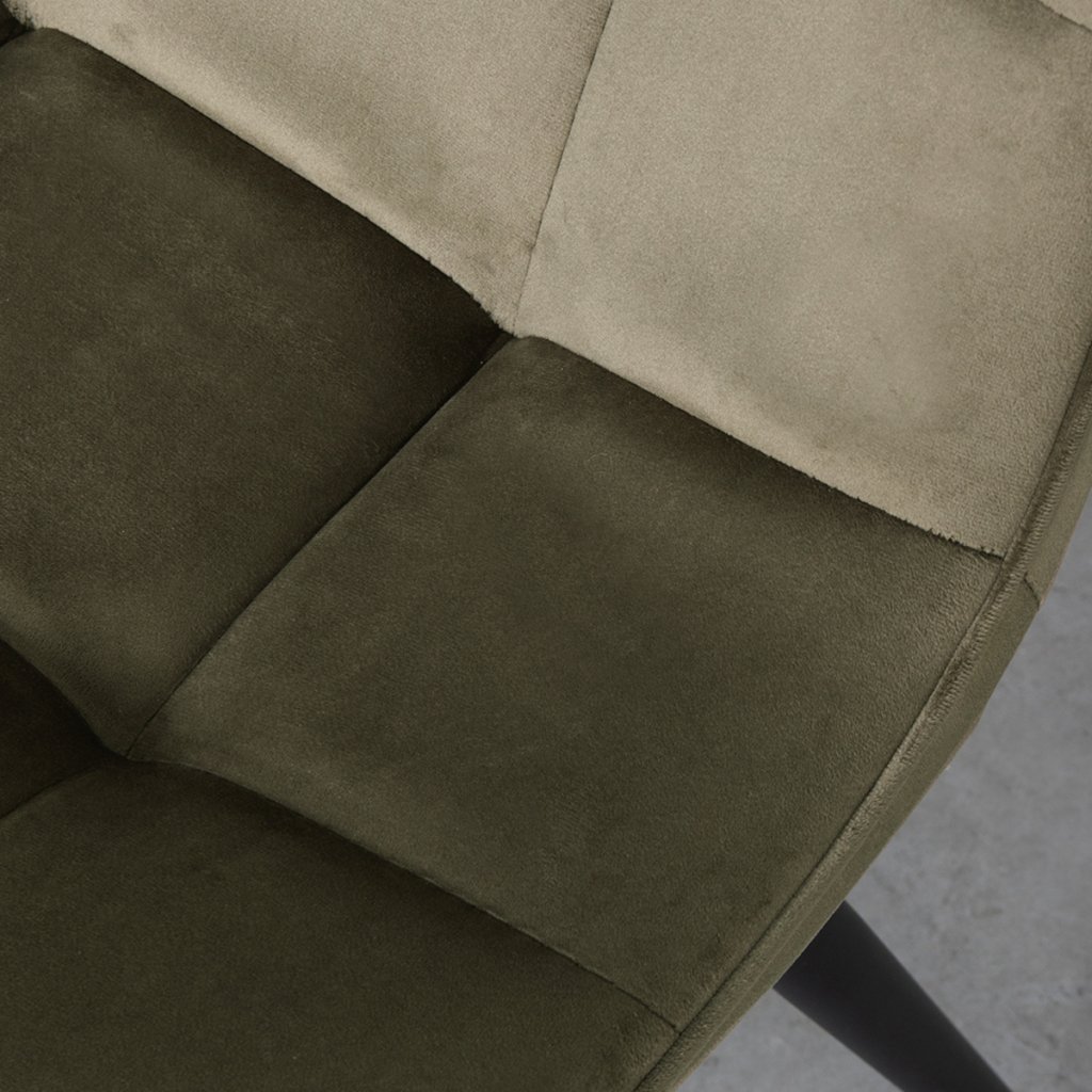 Jídelní židle BISTRO od holandského výrobce industriálního nábytku LABEL51. Židle je postavena na 4 černých kovových nohách, které zajišťují maximální stabilitu a nosnost. Mírně prošívané sedadlo s opěradlem ze sametu v olivové barvě vám zajistí opravdové pohodlí při vašem posezení. BISTRO je krásná židle, která kombinuje pohodlí a kultivovanost.