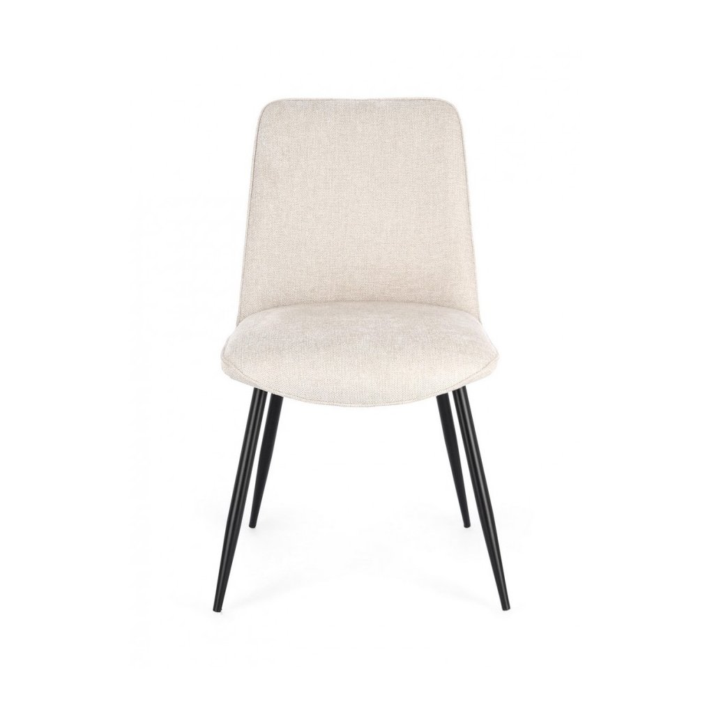 Designová jídelní židle CORA od italského výrobce stylového nábytku BIZZOTTO. Židle je vyrobená z černě lakovaných kovových nohou připevněných ze spodu k sedáku konstruovaného z pevné překližky, který je obalen výplní z polyuretanu, aby zajistil maximálně pohodlné sezení, a finálně potažen krásným světlým potahem.