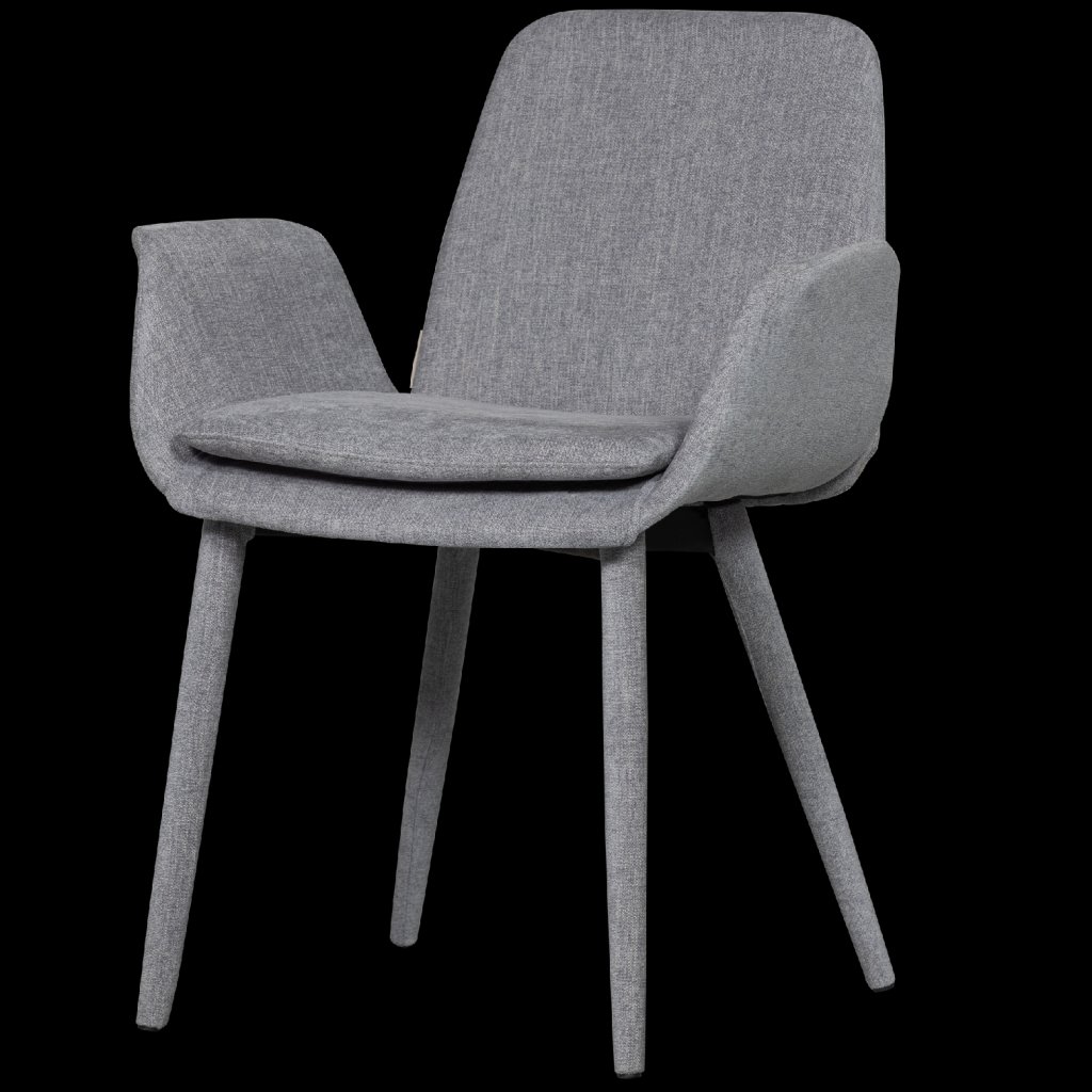 Designová jídelní židle CURVE od holandského výrobce kvalitního nábytku vtwonen. Židle se skládá ze 4 čalouněných nohou, které dodávají vzhledu židle opravdu jedinečný nádech. Ty jsou připojeny k vrchnímu tělu židle, které se skládá ze sedáku, opěrky a 2 područek. Vše je potaženo tkanou látkou. Velmi příjemná židle pro váš vysněný jídelní kout.