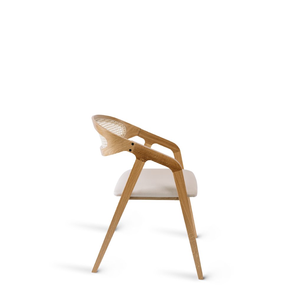 Designová jídelní židle FRAME CANE od českého výrobce kvalitního dřevěného nábytku MURDIA. Jídelní židle FRAME CANE je jedinečným spojením moderní estetiky a rustikálního šarmu. Její pevný rám z masivního bukového dřeva zaručuje stabilitu, dlouhou životnost i vysokou nosnost. Klíčovým prvkem designu je proplétaný opěrák z přírodní výpletu, který dodává židli výrazný a vzdušný charakter. Pro ještě větší pohodlí je židle vybavena měkčeným čalouněným sedákem, který příjemně kontrastuje s lehkostí opěrky a zajišťuje komfort i při delším sezení.