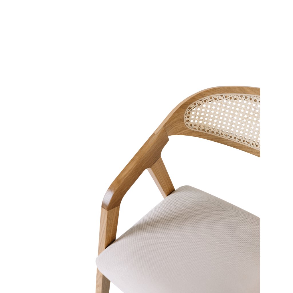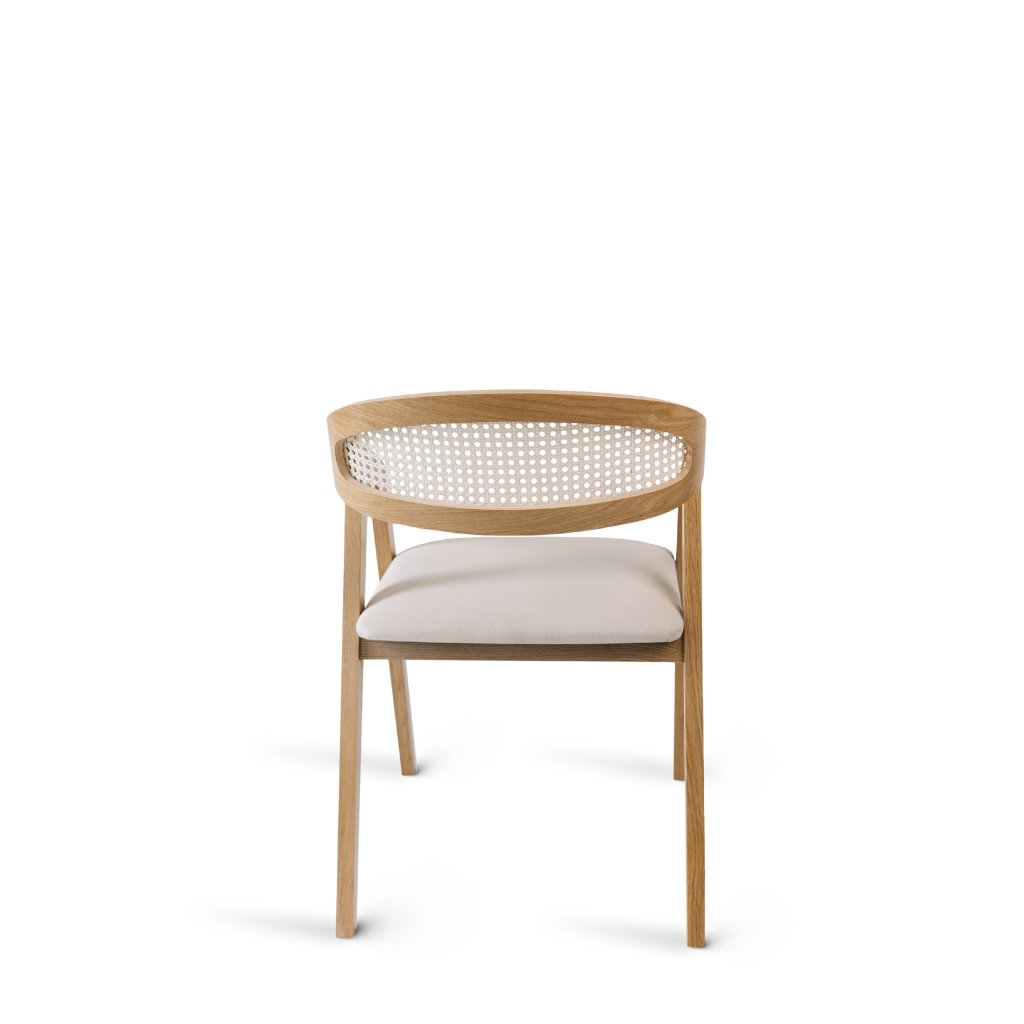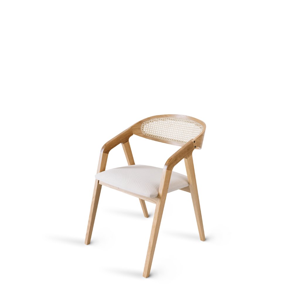 Designová jídelní židle FRAME CANE od českého výrobce kvalitního dřevěného nábytku MURDIA. Jídelní židle FRAME CANE je jedinečným spojením moderní estetiky a rustikálního šarmu. Její pevný rám z masivního dubového dřeva zaručuje stabilitu, dlouhou životnost i vysokou nosnost. Klíčovým prvkem designu je proplétaný opěrák z přírodní výpletu, který dodává židli výrazný a vzdušný charakter. Pro ještě větší pohodlí je židle vybavena měkčeným čalouněným sedákem, který příjemně kontrastuje s lehkostí opěrky a zajišťuje komfort i při delším sezení.