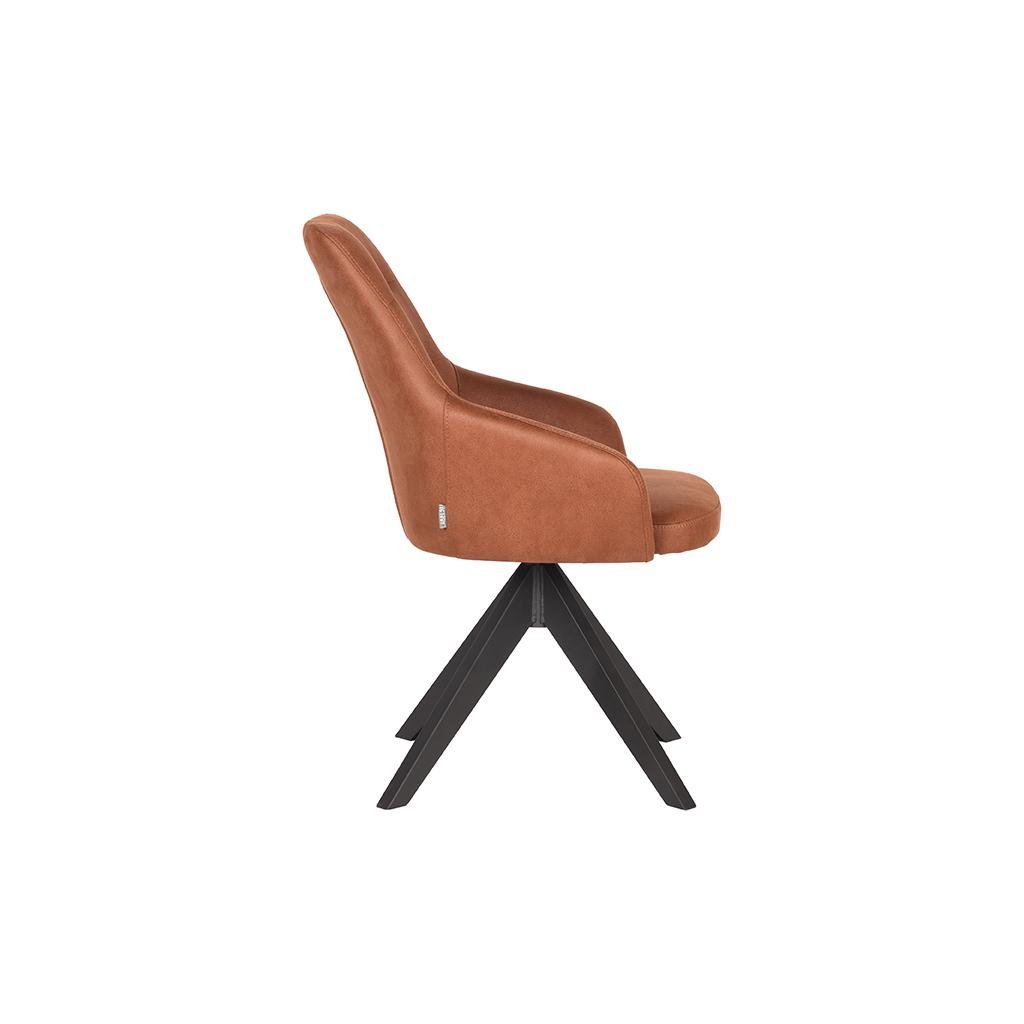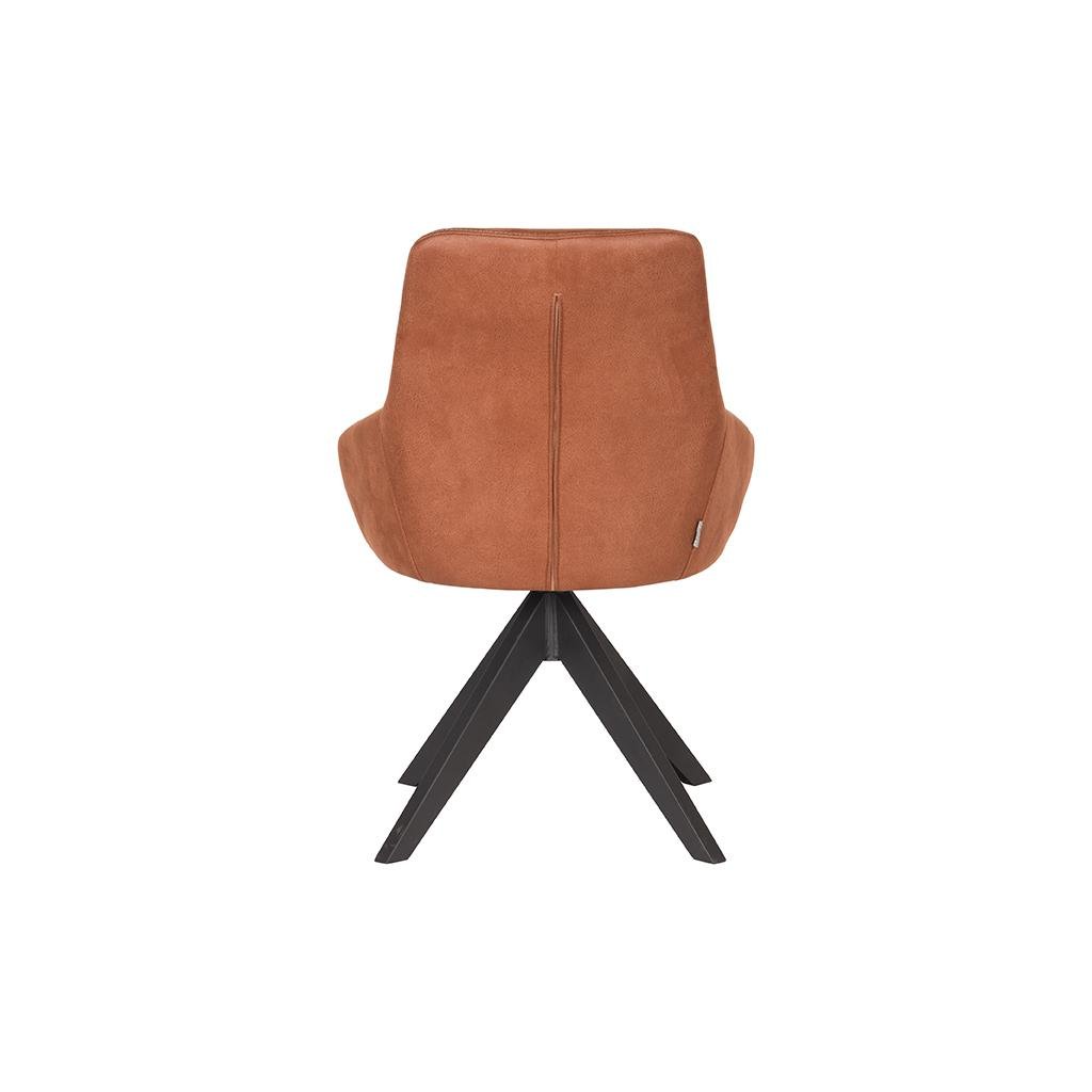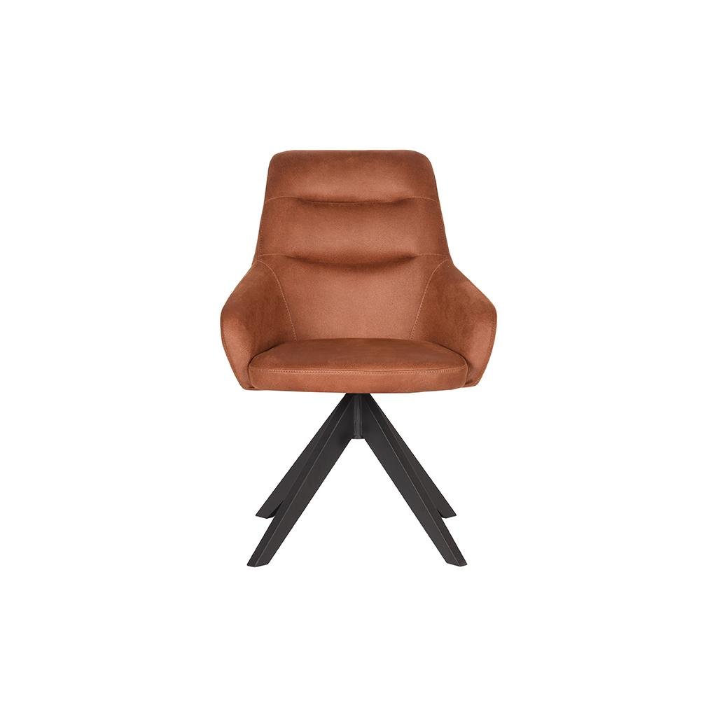 Jídelní židle JACE od holandského výrobce industriálního nábytku LABEL51. JACE tvoří robustní sedák s opěradlem a područkami v barvě koňaku z mikrovlákna. Maximální nosnost a stabilitu zajišťují čtyři černé kovové nohy, které vycházejí ze středu židle. JACE je odvážná jídelní židle, stvořená v několika různých barvách z vysoce kvalitního materiálu.