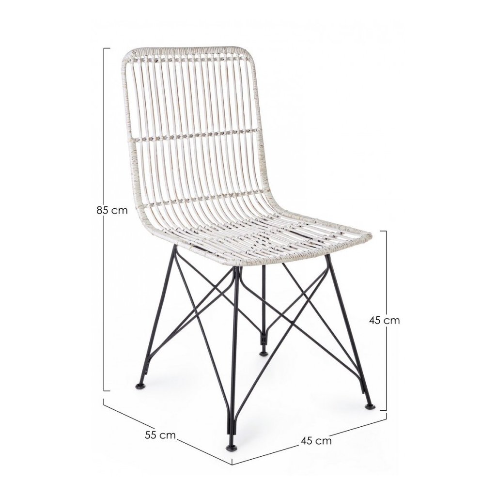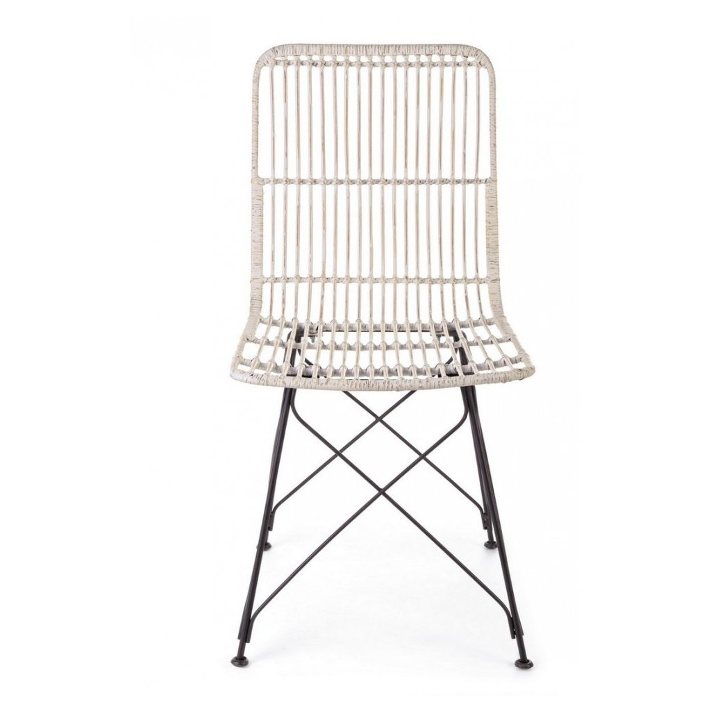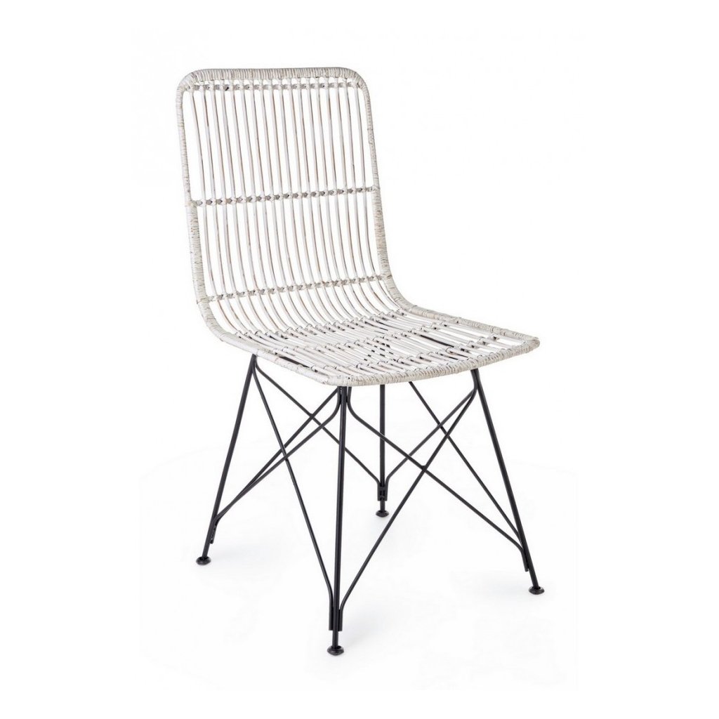 Designová jídelní židle LUCILA od italského výrobce stylového BIZZOTTO v provedení konstrukce z tenkého a pevného černého kovu omotaného bílé barveným ratanovým proutím podél sedáku a opěrky.