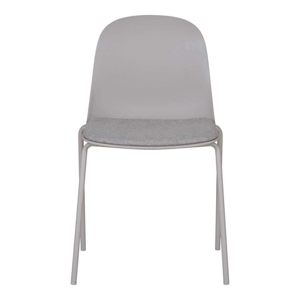 Designová jídelní židle MADALENA od dánského výrobce nádherného skandinávského nábytku HOUSE NORDIC. Židle je vyrobená z kombinace odolného lisovaného plastu, oceli. Sedák má vyrobený z polyesteru ve světle šedém provedení. Židle je velmi stabilní a pevná díky kovovým nohám.