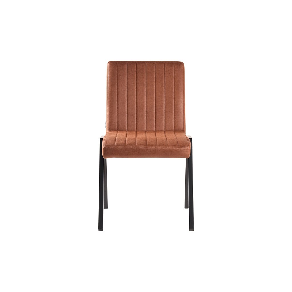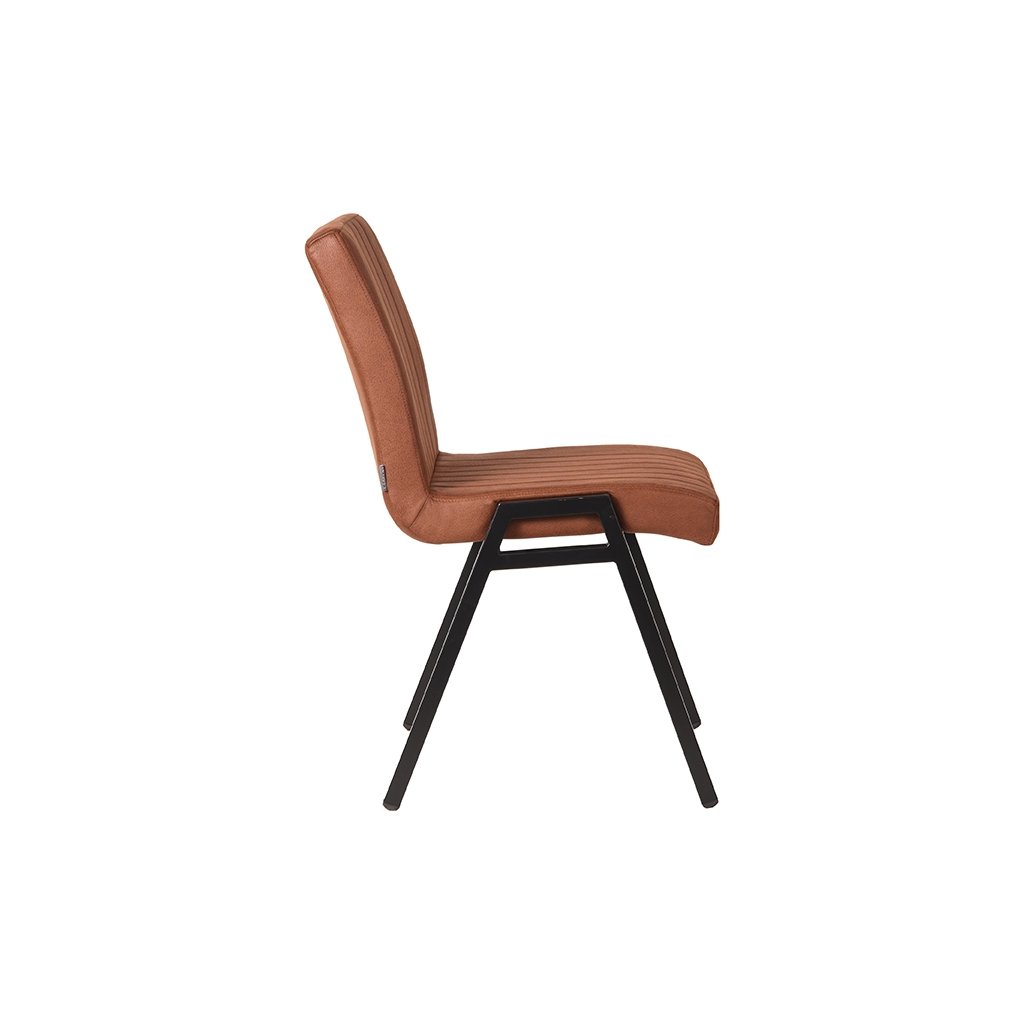 Jídelní židle MATZ od holandského výrobce industriálního nábytku LABEL51. Jídelní židle MATZ má maximální stabilitu a nosnost díky 4 černým kovovým nohám. Pro vaše pohodlí vám poslouží prošívaný sedák s opěradlem, vyroben z mikrovlákna v barvě koňaku. Moderní a poutavá židle na které budete rádi trávit spousty času.