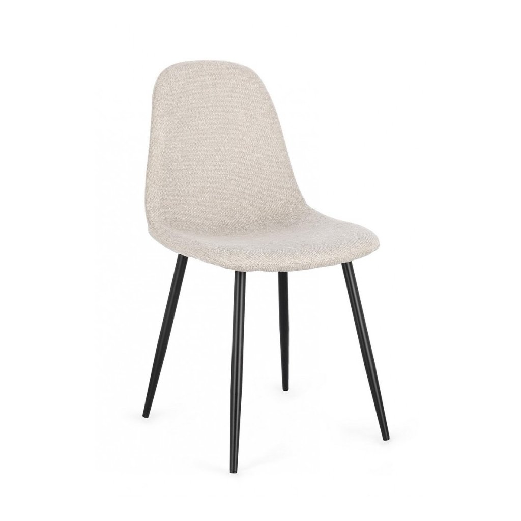 Designová jídelní židle NEW IRELIA od italského výrobce stylového nábytku BIZZOTTO v provedení černých kovových nohou a béžového sedáku.