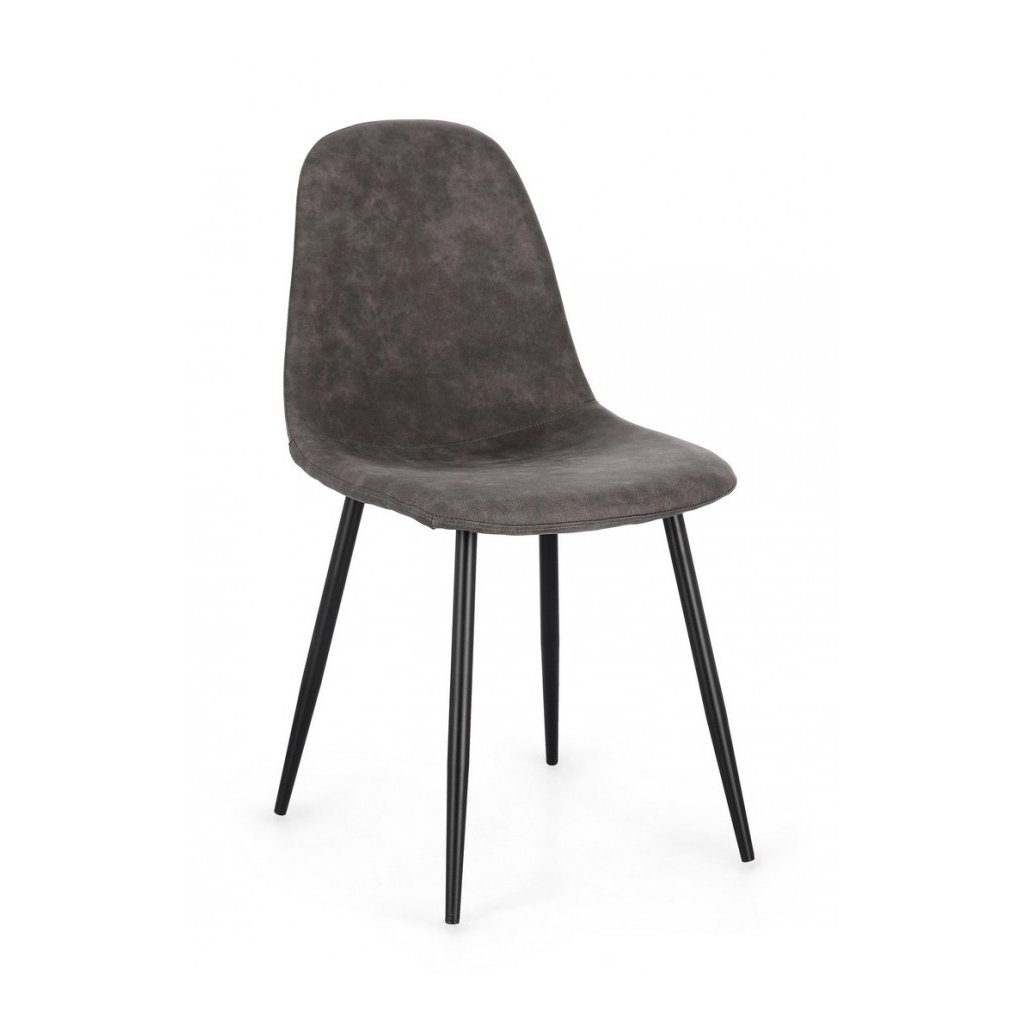 Designová jídelní židle NEW IRELIA od italského výrobce stylového nábytku BIZZOTTO. Židle je vyrobená z černě lakovaných ocelových nohou připevněných ze spodu k sedáku konstruovaného z pevné překližky, který je obalen výplní z polyuretanu, aby zajistil maximálně pohodlné sezení, a finálně potažen krásným tmavě šedým potahem s efektem mikrovlákna