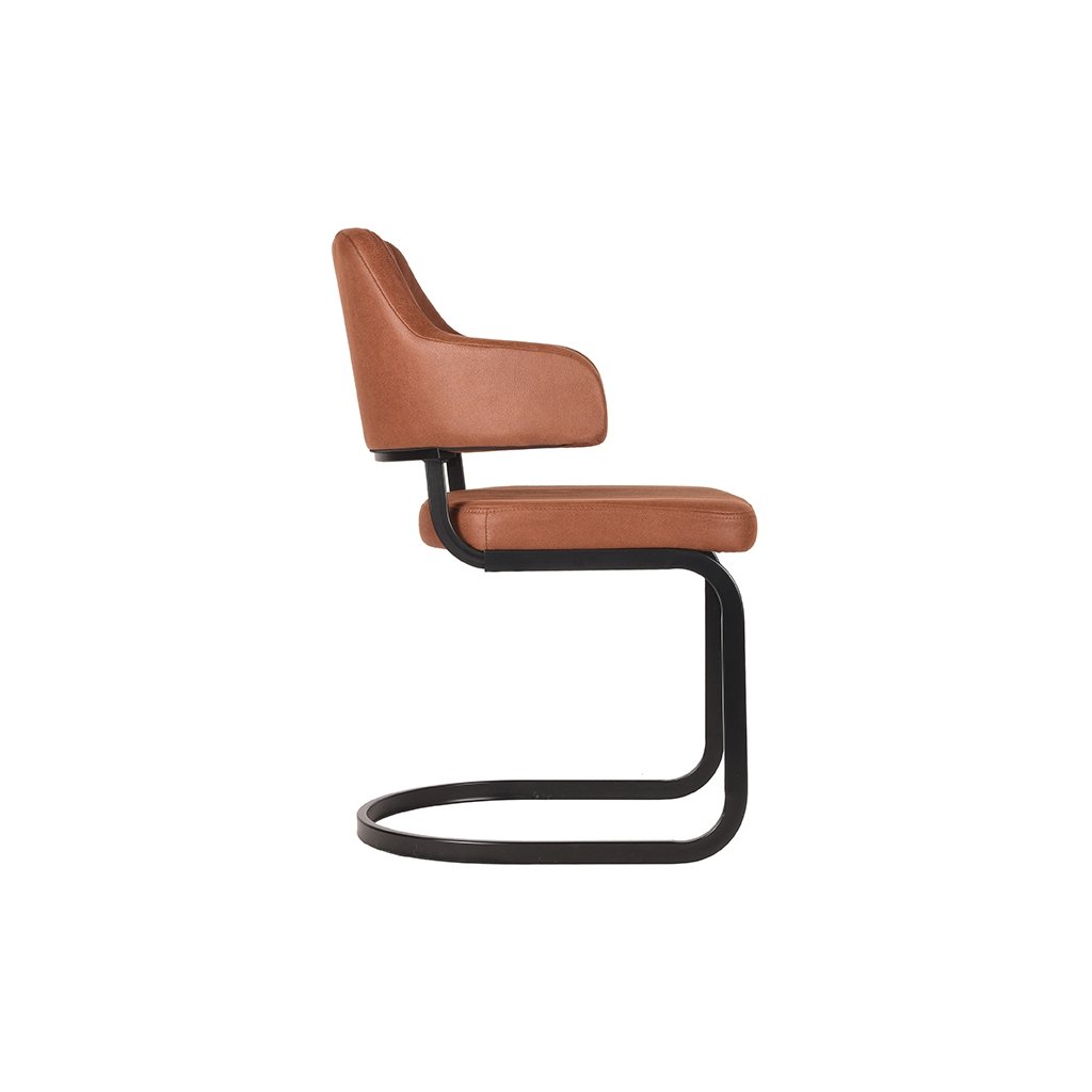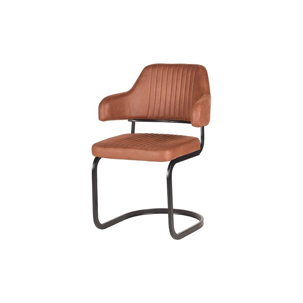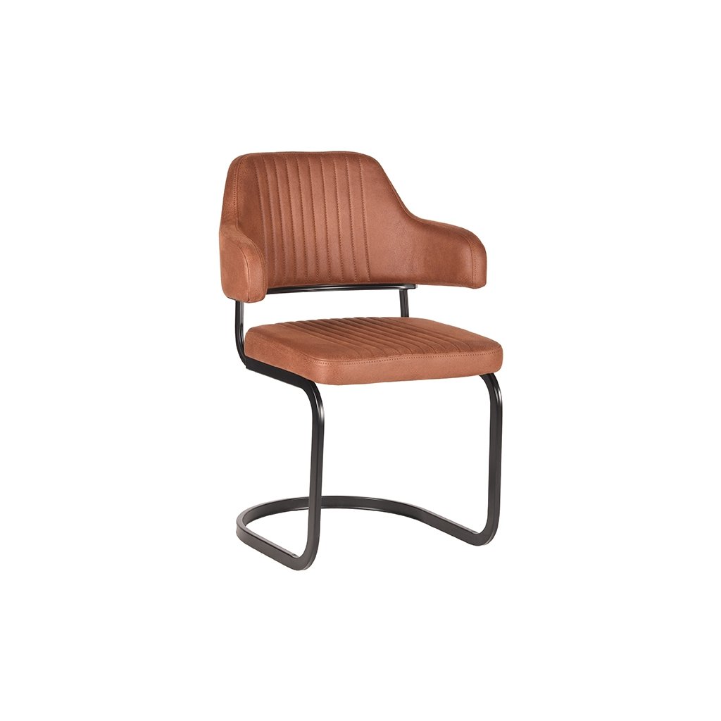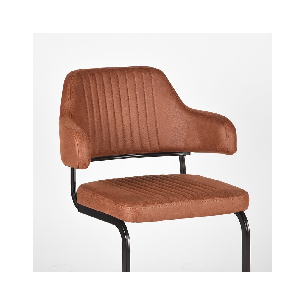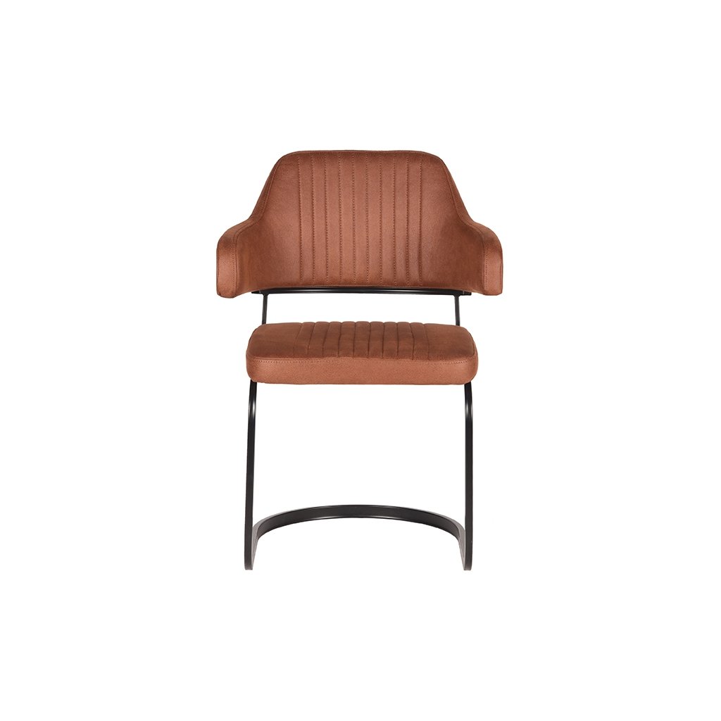 Jídelní židle OTTA od holandského výrobce industriálního nábytku LABEL51. OTTA je velmi moderní a elegantní židle svého druhu. Otta má velmi vysoký komfort sezení díky kulatému prošívanému opěradlu a samostatnému sedáku z mikrovlákna. Židle zaujme především svou konzolovou nohou, která následně spojuje oddělený sedák a opěradlo. Mikrovlákno v koňakové barvě spolu s krásným černým kovem dává této židli luxusní vzhled.