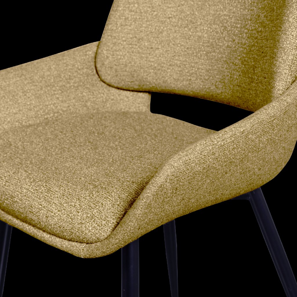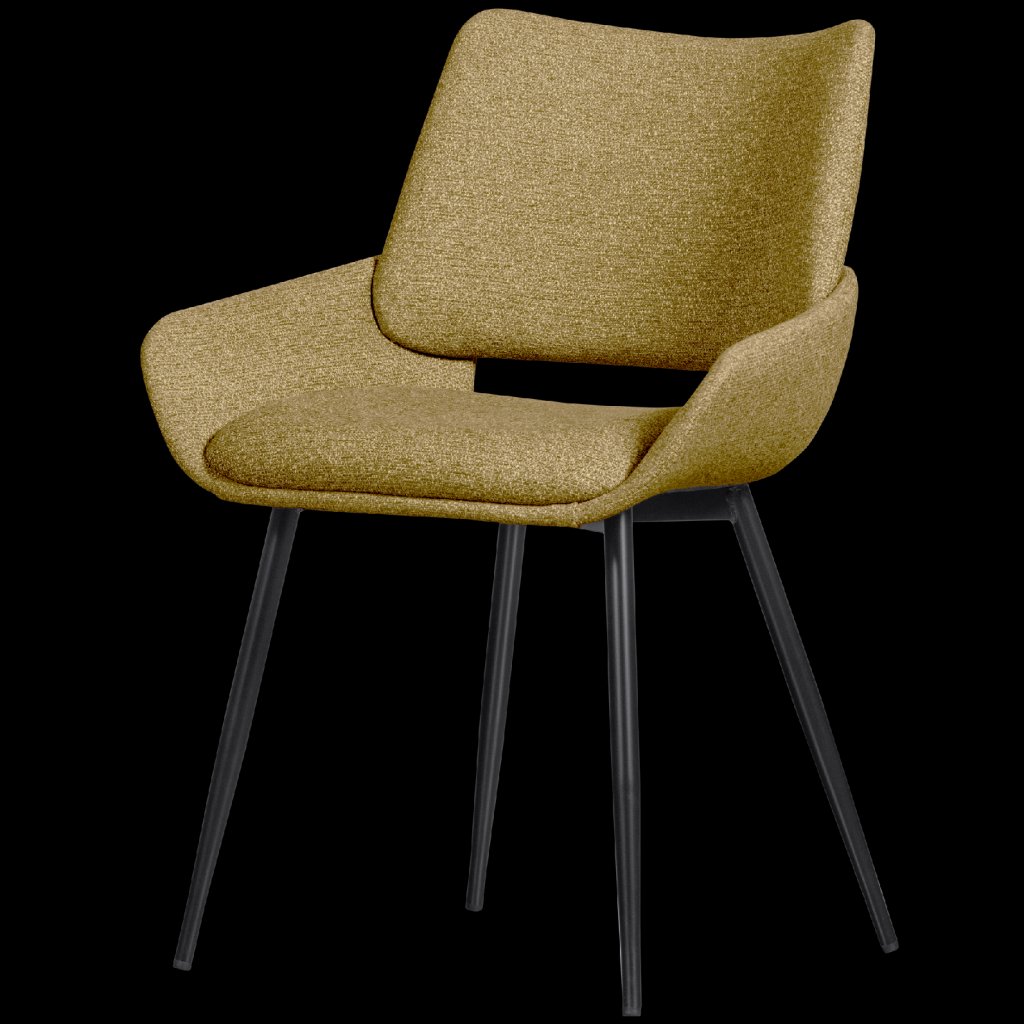 Jídelní židle PARADE od holandského výrobce stylového nábytku BePureHome. Kostru židle tvoří rám v kombinaci dřevotřísky a překližky, na kterou navazují 4 nohy z černě práškovaného kovu. Kostra je potažena polyuretanovou pěnou a na závěr krásným melange potahem v hořčicové barvě.
