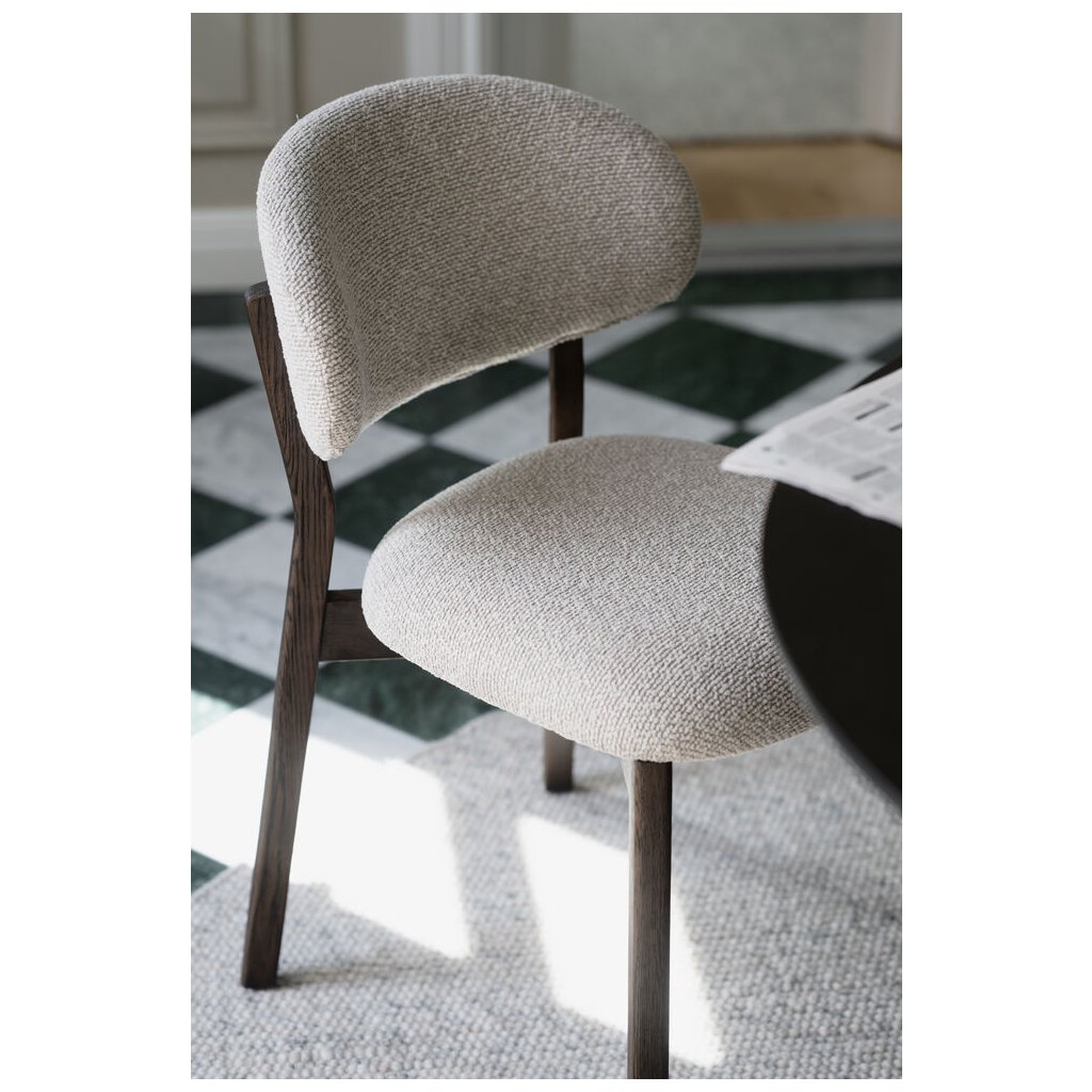 PATTERSON nejlépe vynikne v kombinaci s přírodními materiály, jako je dubová dýha, kámen nebo keramika, a ladí s interiéry v duchu scandi, japandi i moderního minimalismu. Skvěle doplní jídelní stoly z masivního nebo dýhovaného dřeva ve tmavě hnědých tónech.