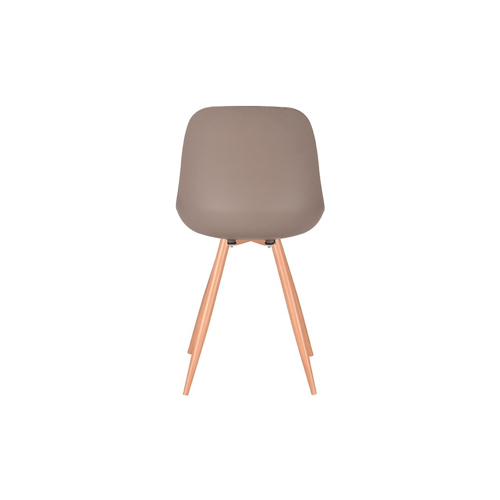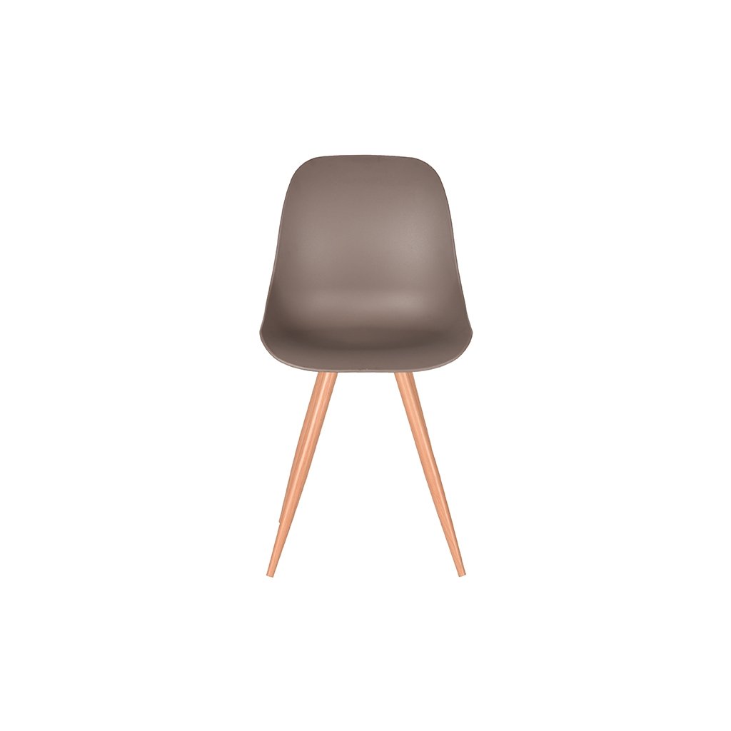 Jídelní židle RIMINI od holandského výrobce industriálního nábytku LABEL51. RIMINI je moderní designová židle s trendy, klasickým nádechem. Jídelní židli tvoří skořepinové sedadlo s pohodlným opěradlem v kávové barvě a čtyři kovové nohy. Kovové nohy jsou v dekoru dřeva a zajišťují židli maximální stabilitu a nosnost. Díky krásné kombinaci chladného designu, skvělých materiálů a neutrálně skořepinového sedadla je tato židle nezbytností pro váš domov.