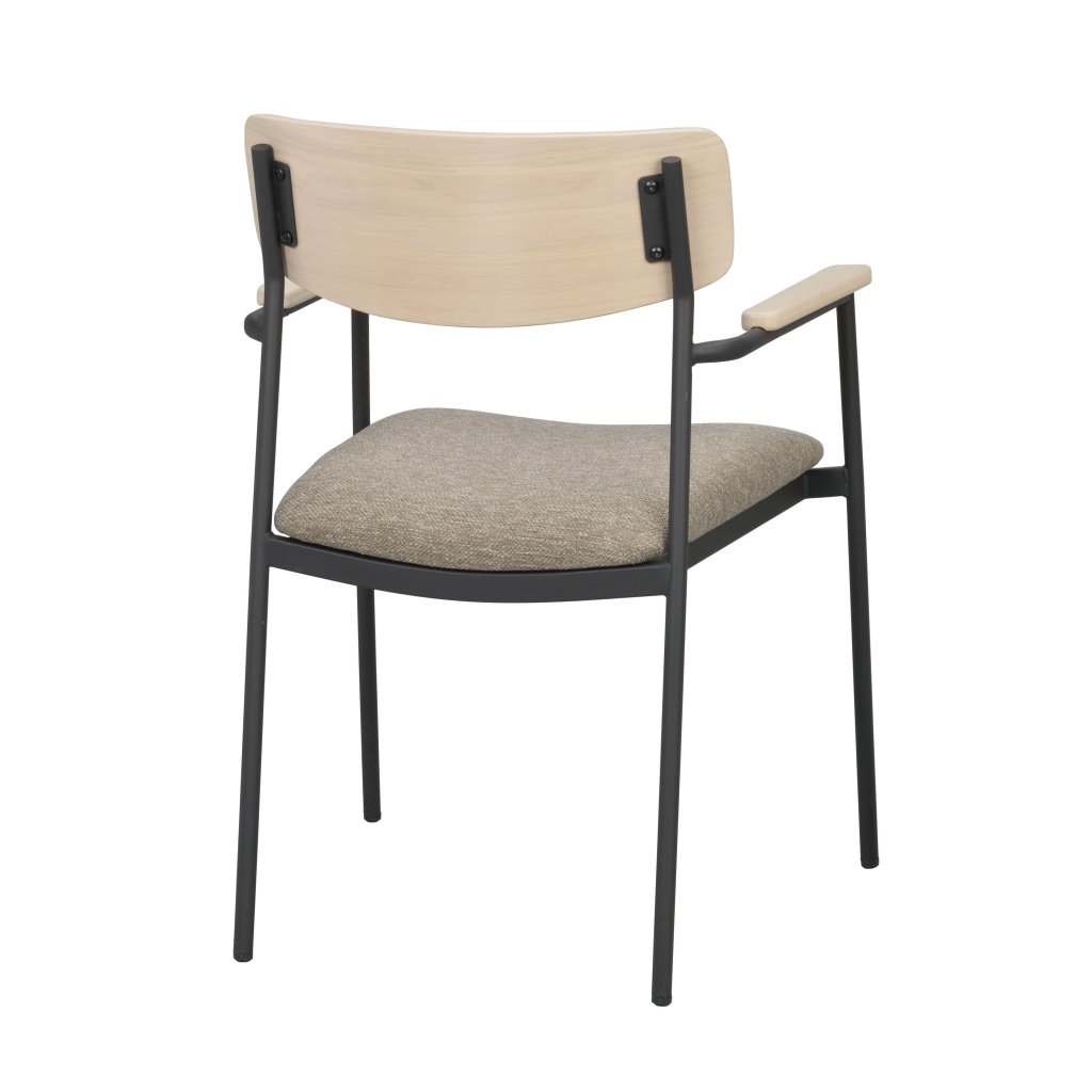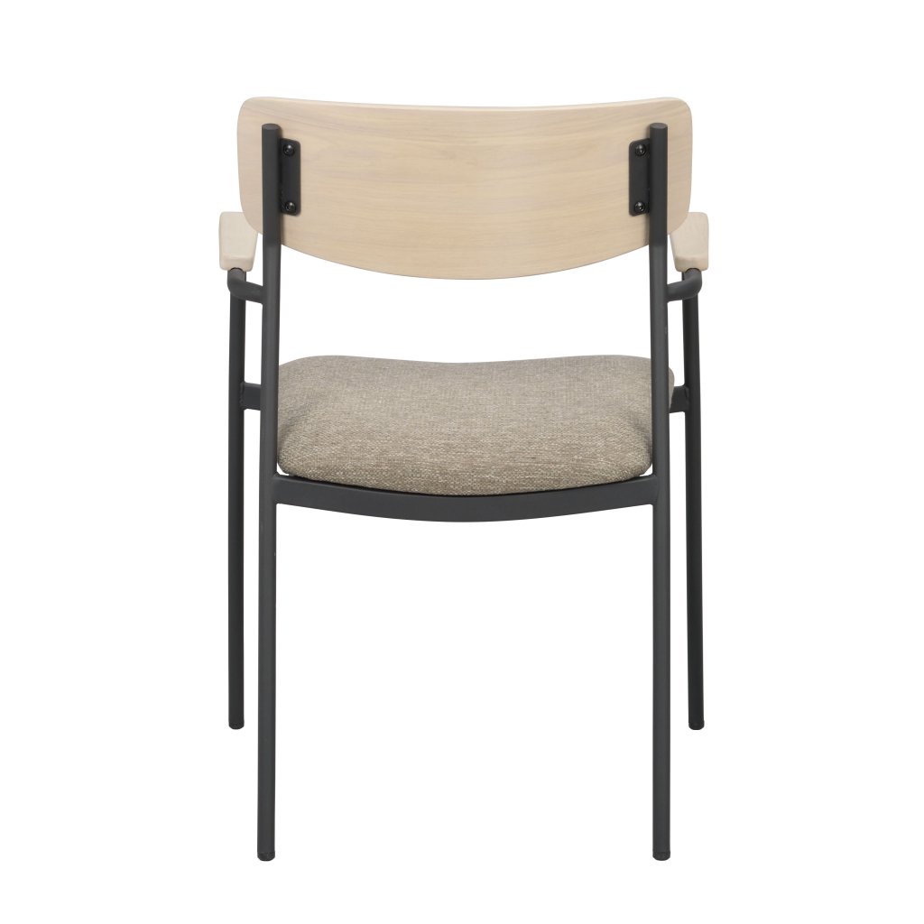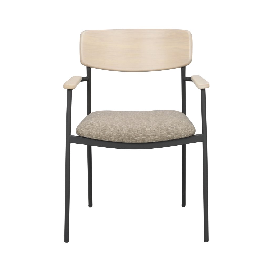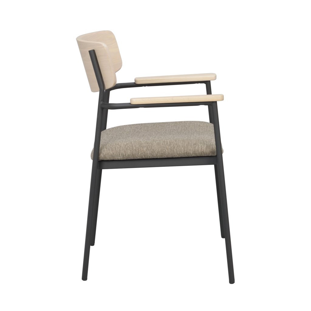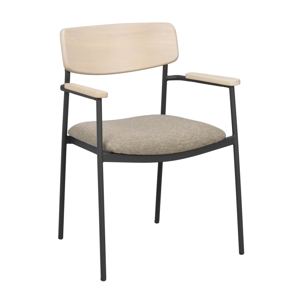 Designová jídelní židle s područkami MAYMONT od švédského designového výrobce kvalitního dřevěného nábytku ROWICO. Židle MAYMONT je dodávána v nádherném provedení opěradla z hnědého masivního dubu a čalouněným sedákem z tmavě béžové látky. Nohy jsou vyrobeny z černého kovu s práškovým nástřikem. Židle má čisté linie a je velmi pohodlná. Hodí se do většiny domácností a lze ji snadno sladit s různými jídelními stoly. Tradiční design v moderním pojetí dává dohromady velmi nádherný kus, který zajisté potěší milovníky dřevěných židlí. Použité dřevo má certifikát FSC, což značí ekologicky získané dřevo. Židle je stohovatelná.