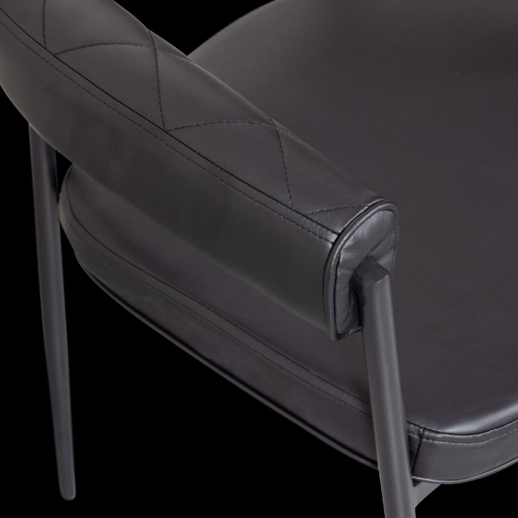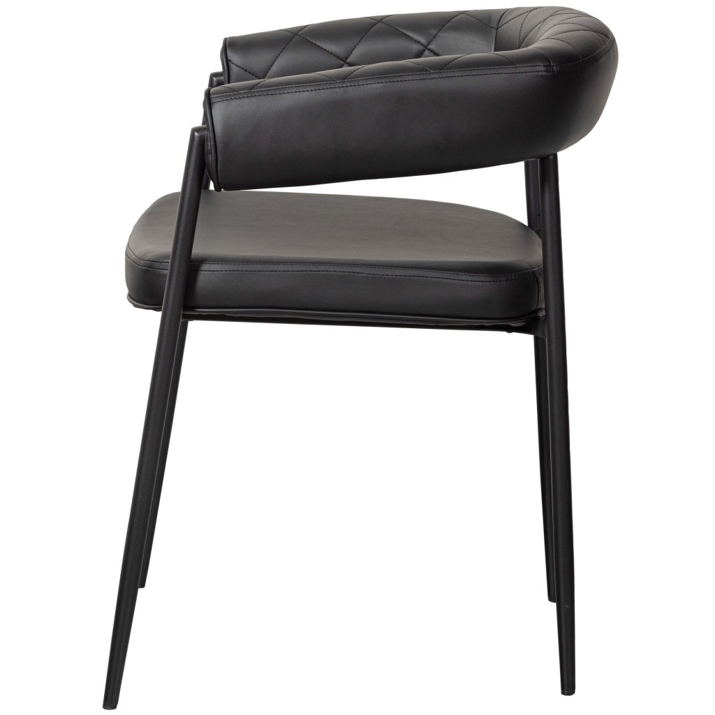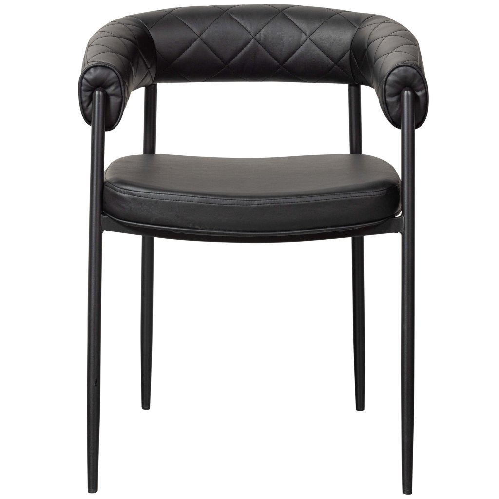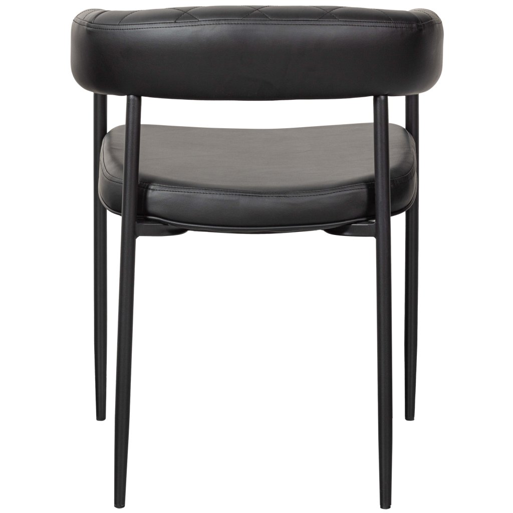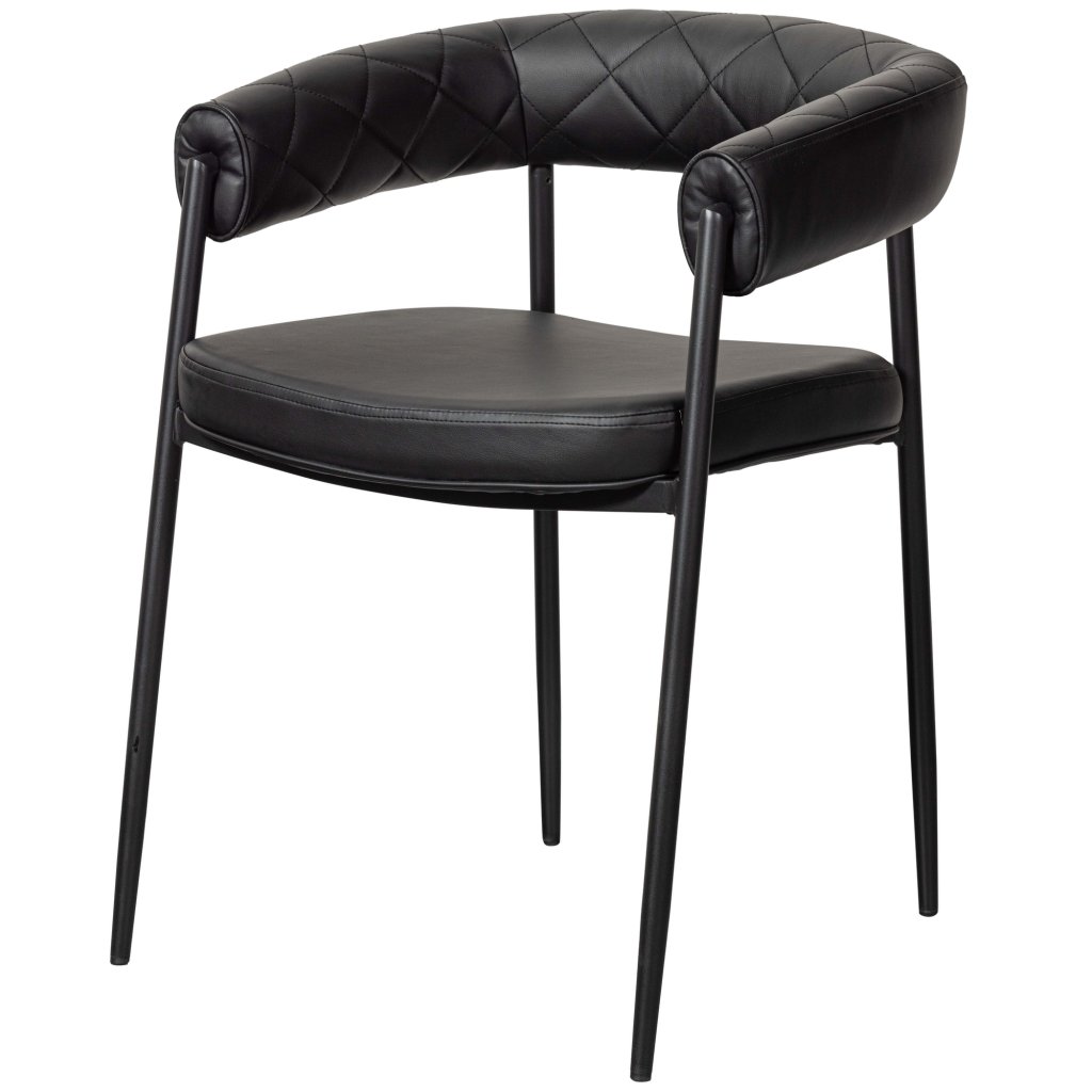 Jídelní židle SEV od holandského výrobce kvalitního nábytku WOOOD. Židli SEV tvoří rám vyrobený z kovu s matným černým práškovým povlakem a sedák a područky čalouněné v černém koženkovém vzhledu. Opěradlo se vzdušným designem a dekorativním prošívaným lemováním vytváří elegantní vzhled a zajišťuje bezpečné sezení. Díky konstrukci z černého kovu má židle SEV maximální stabilitu a nosnost.
