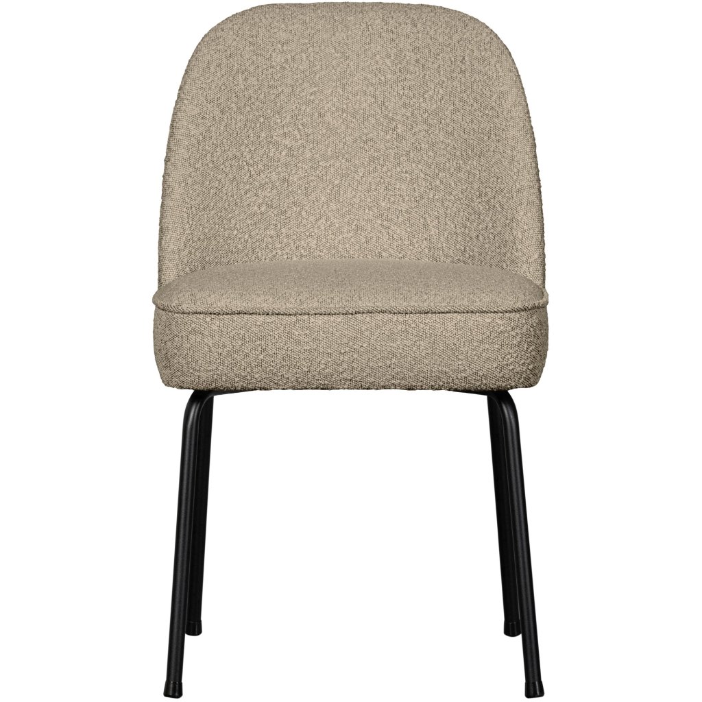 Jídelní židle VOGUE od holandského výrobce kvalitního nábytku BePureHome. Židle se skládá ze sedáku a opěradla z béžového buklé s výplní a 4 černých kovových nohou s práškovanou úpravou, které jsou k sedáku ze spodu připevněny. Tvoří tak elegantní celek, který vám zajistí maximální pohodlí.