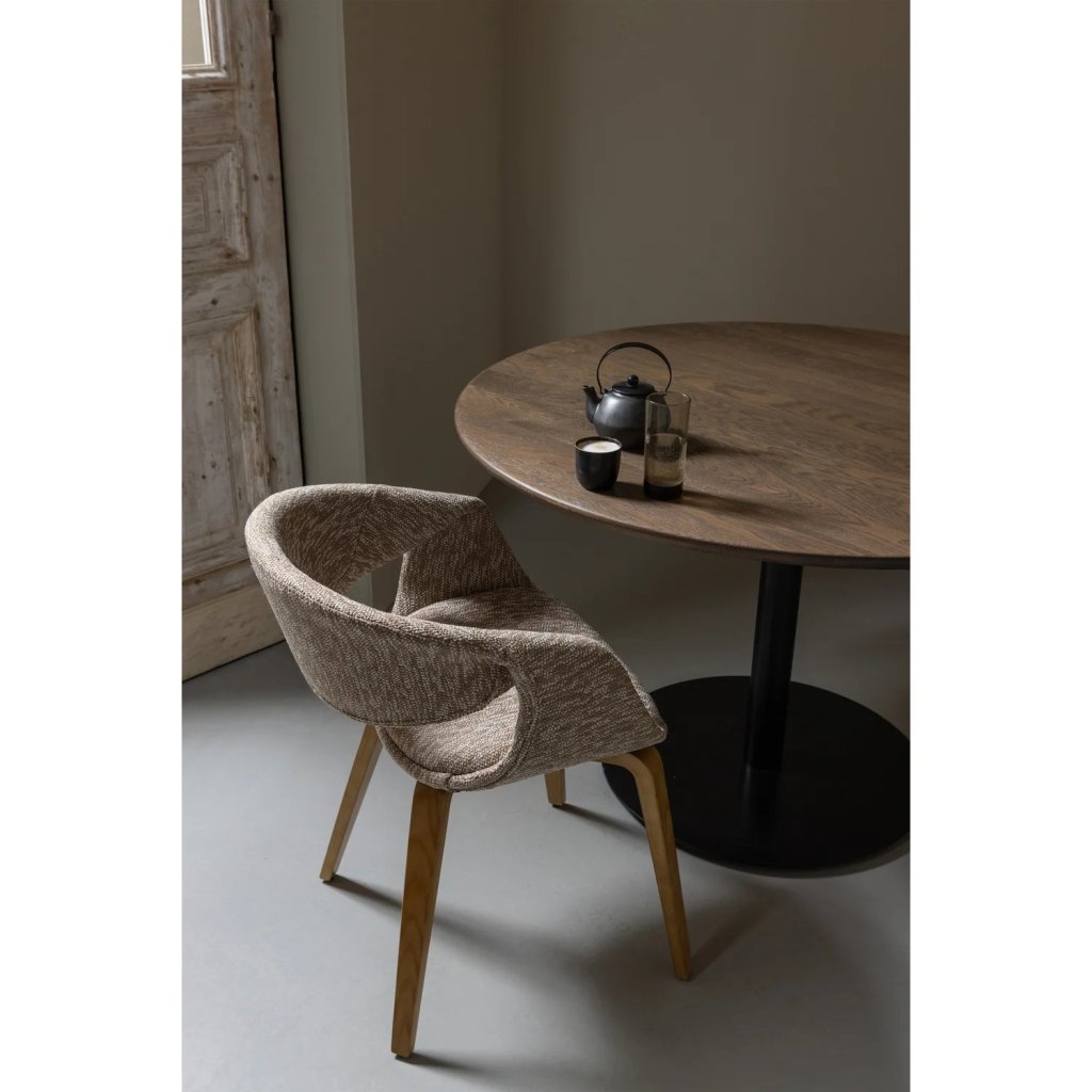 Jídelní židle YOSSI skvěle zapadne do každého interiéru a je krásně kombinovatelná s jakýmkoliv stolem ve světlé či tmavé barvě, kulatého či hranatého tvaru. Elegantní spojení tkané látky a dřevěných nohou rozzáří vaši jídelnu či kuchyň. Tato židle je díky svému propracování opravdu pohodlná, proto jí můžete využít také v pracovně u stolu.