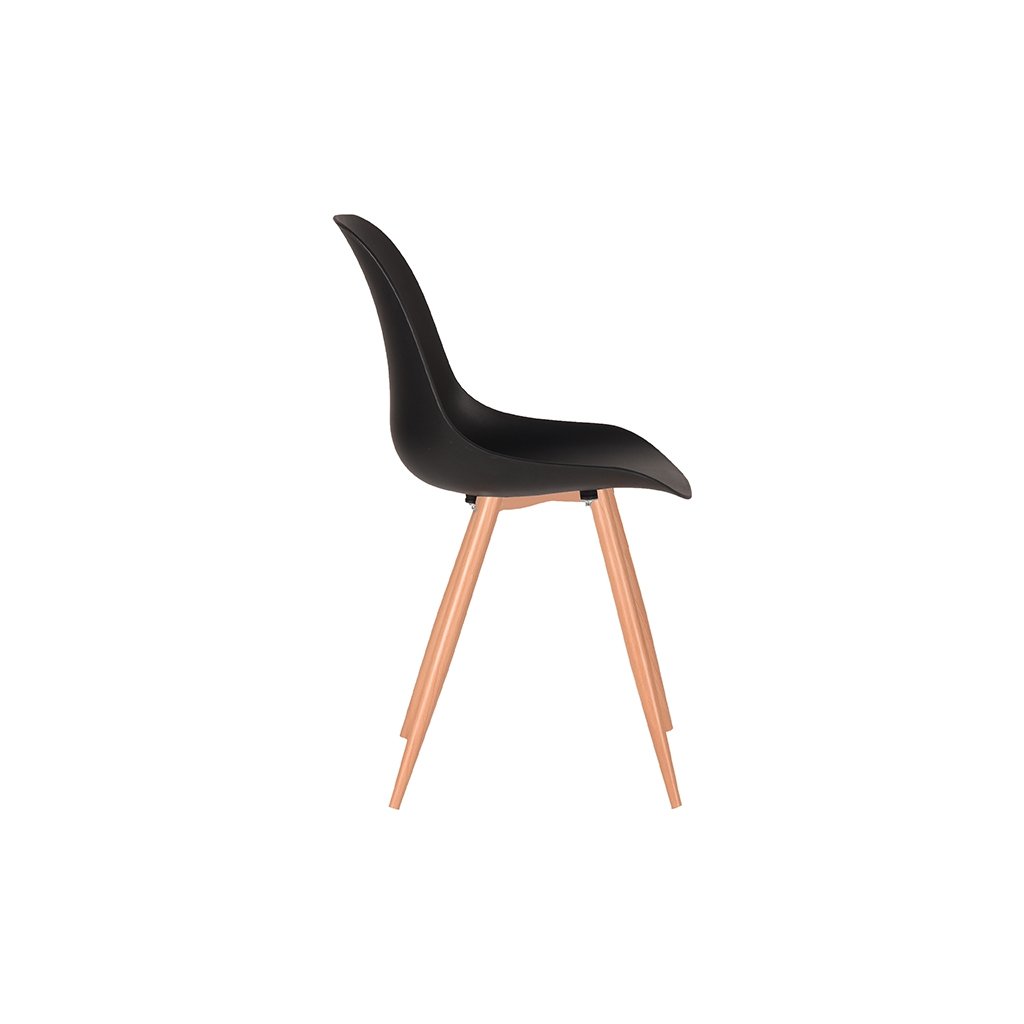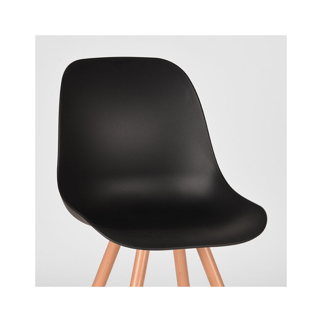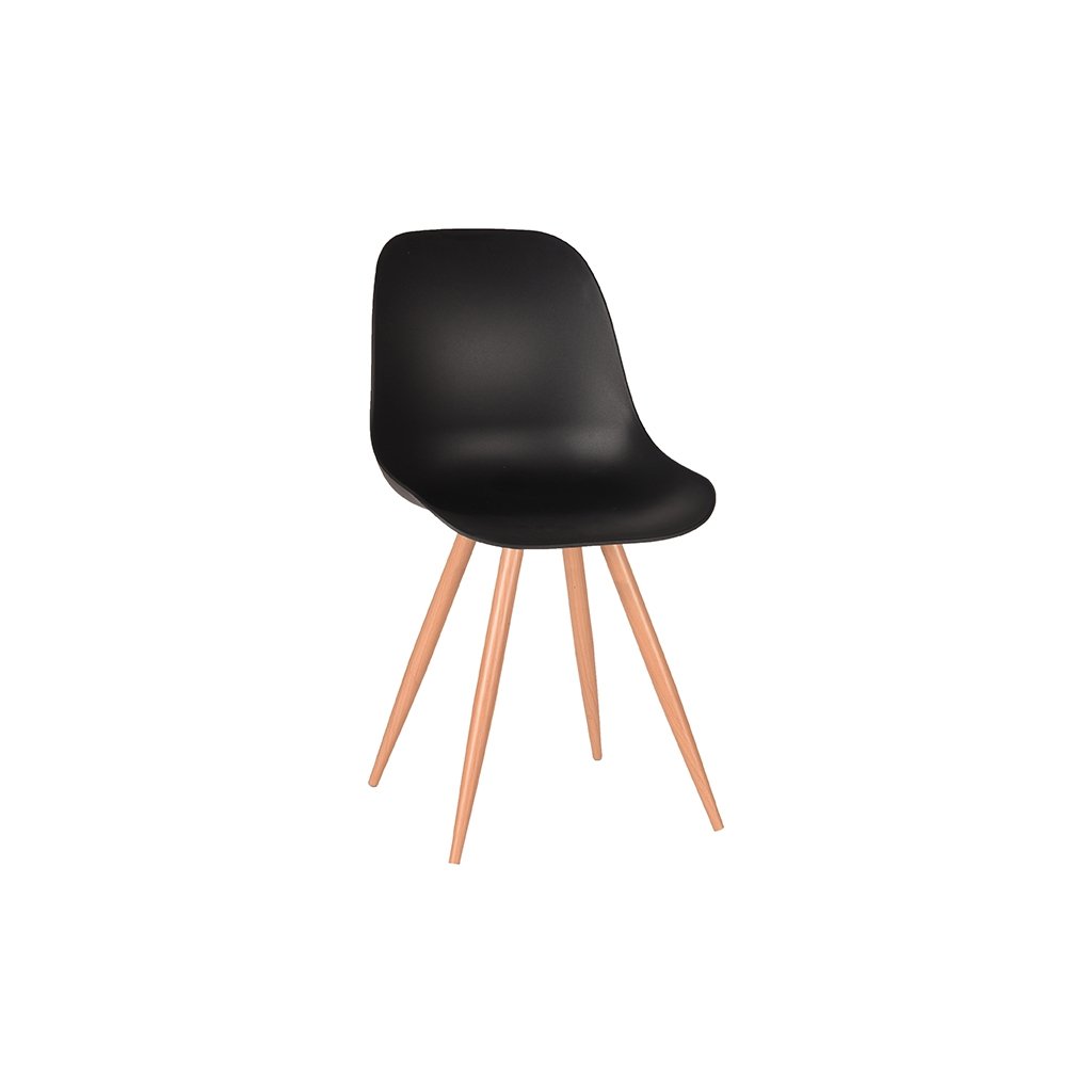 Jídelní židle RIMINI od holandského výrobce industriálního nábytku LABEL51. Dominantou této jídelní židle je skořepinové sedadlo s pohodlným opěradlem v černé barvě. Maximální stabilitu a nosnost zajišťují čtyři kovové nohy v dekoru dřeva. Díky krásné kombinaci chladného designu, skvělých materiálů a neutrálně skořepinového sedadla je tato židle nezbytností pro váš domov.