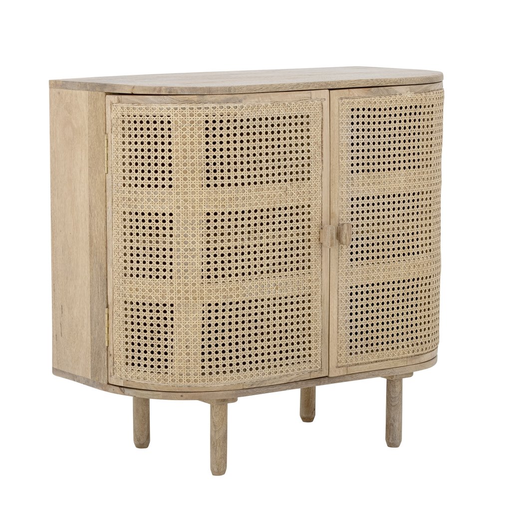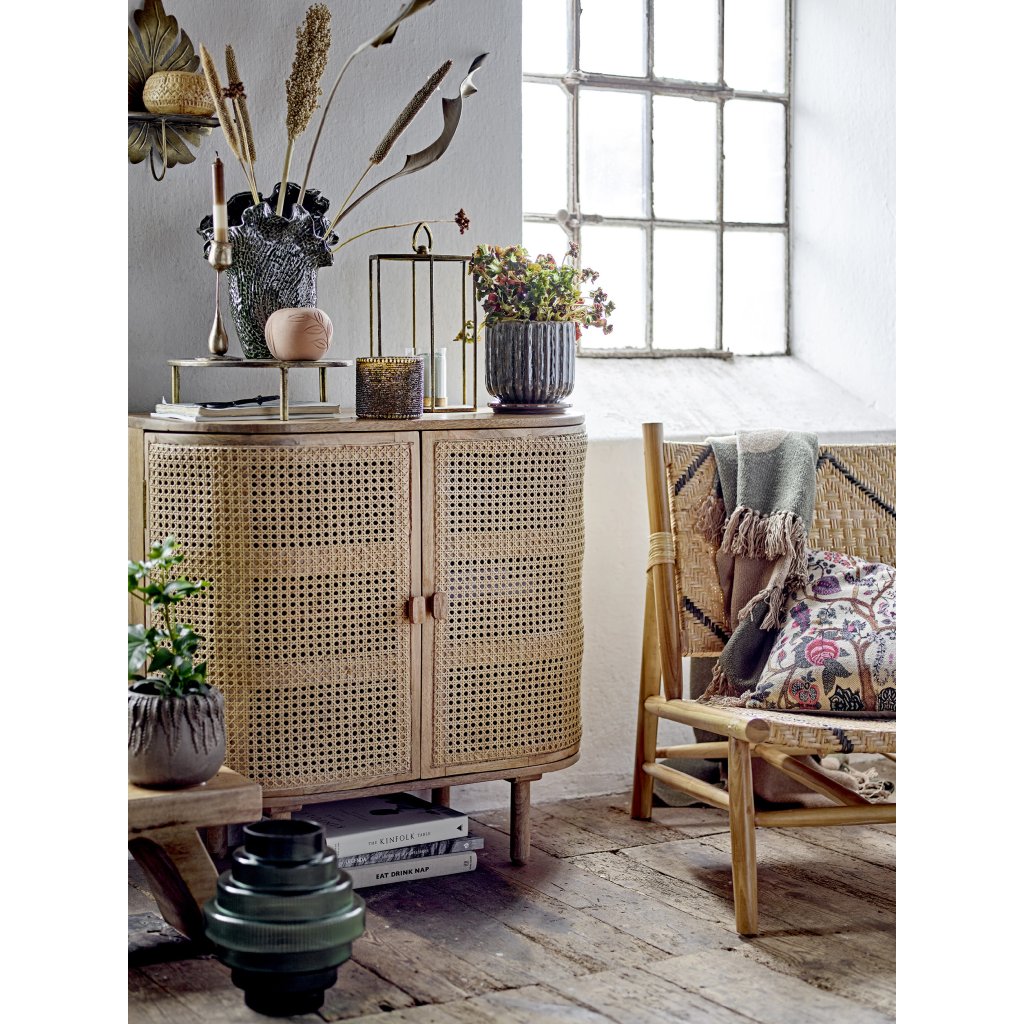 Stylový kabinet BANDOL od dánského výrobce nádherného nábytku BLOOMINGVILLE. BANDOL je stylový a přírodní kus nábytku, který vyniká svým zaobleným designem a organickým vzhledem. Je vyroben z masivního mangového dřeva a doplněn výpletem z rákosu ve dvířkách, které dodávají nábytku lehkost, texturu a jemný průsvit. Lakovaná povrchová úprava zvýrazňuje přirozenou krásu dřeva a zajišťuje snadnou údržbu. Kabinet nabízí praktický úložný prostor v elegantním, přirozeném provedení.