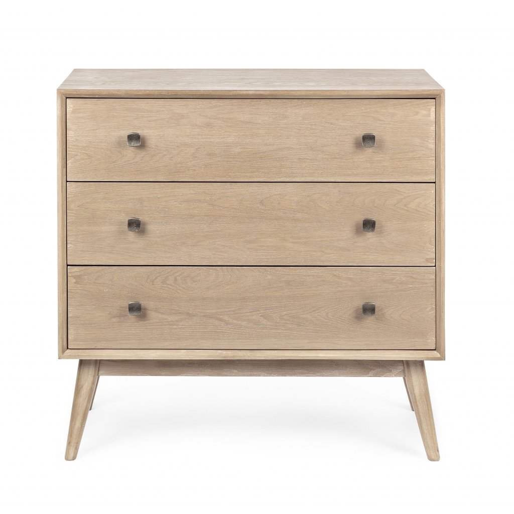 Designová komoda ALANNIS od italského výrobce stylového nábytku BIZZOTTO. ALANNIS je krásná komoda vyrobená z velmi kvalitního jasanového dřeva, postranní panely jsou z MDF desky s jasanovou dýhou a mají kovové úchyty. Dřevěná komoda zaujme nejen svým minimalistickým provedením ale i svou praktičností v podobě 3 zásuvek s drobnými úchyty pro lepší manipulaci. Maximální nosnost a stabilitu zajišťují 4 dřevěné nohy. Komoda se hodí do moderních i klasických interiérů. Krásně zapadne do interiéru laděného do retro stylu, ale určitě bude skvěle vypadat v každém interiéru.
