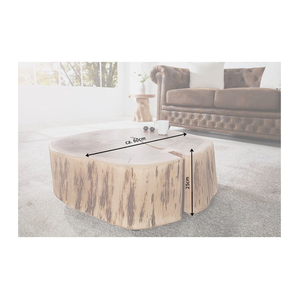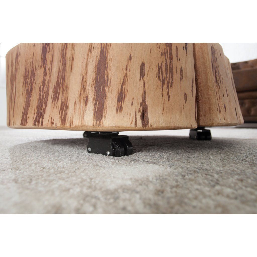 Designový konferenční stolek GOA od německé značky designového nábytku INVICTA. Stolek je opravdu nádherný výrobek z masivního dřeva exotické akácie. Má rozměry 60x60, takže poskytuje velkou plochu na kávu a další věci k pohovce. Jde o kus stromu s váhou kolem 45 kg, takže je opravdu masivní. Spodní kolečka pomáhají s manipulací. Každý kus je unikát a jedinečný. Praskliny a jiné nejsou vadou, ale dokladem přírodního dřeva.