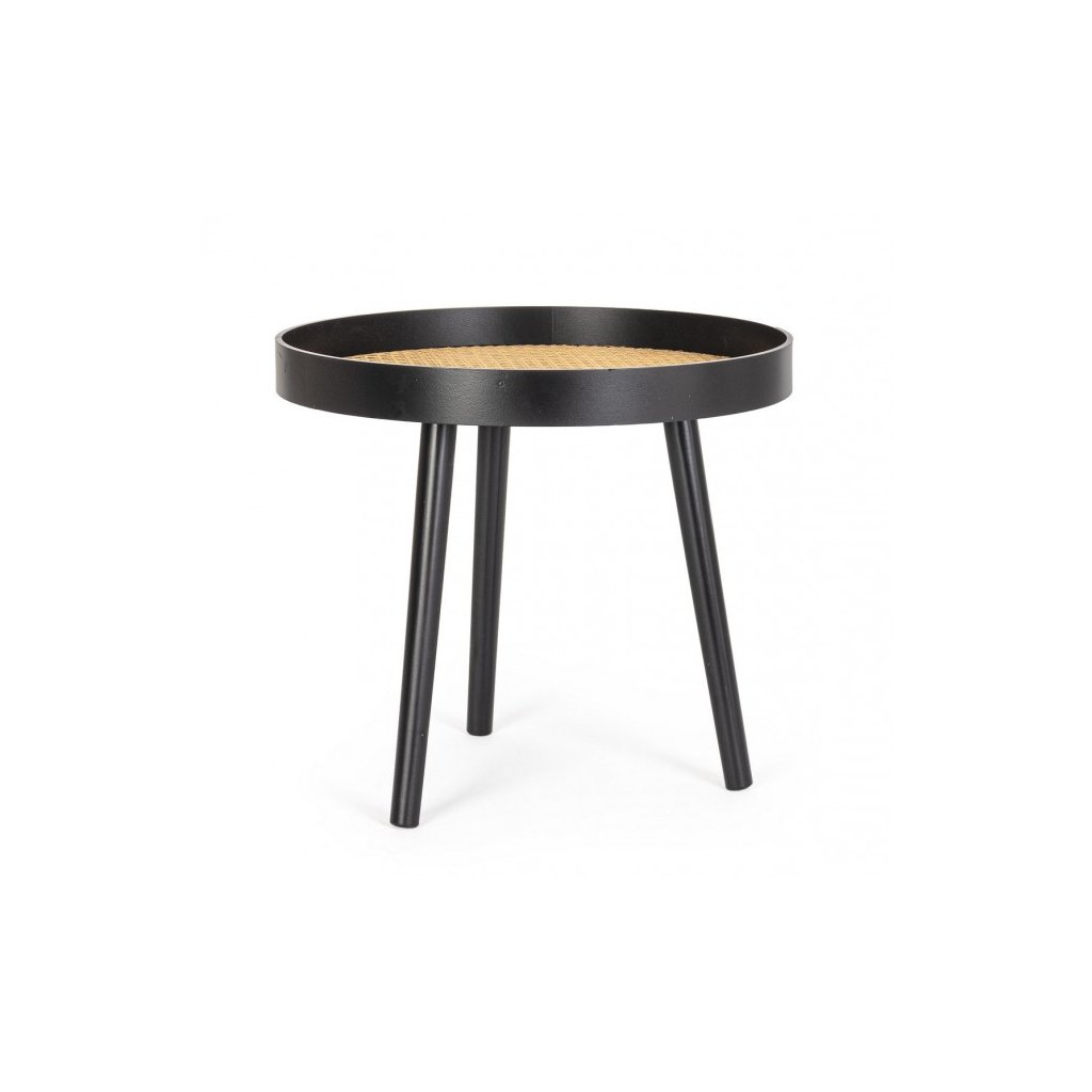 Designový noční stolek JOSINE od italského výrobce stylového nábytku BIZZOTTO. JOSINE je stylový odkládací stolek vyroben z černé mdf desky. Je prostorný díky své vrchní desce s průměrem 50 cm. Maximální nosnost a stabilitu zajišťují 3 nohy z borovicového dřeva. Zajímavým prvkem je vyplnění desky ratanem ve světlé barvě. Moderní kus nábytku nadchne nejednoho obdivovatele moderního minimalismu.
