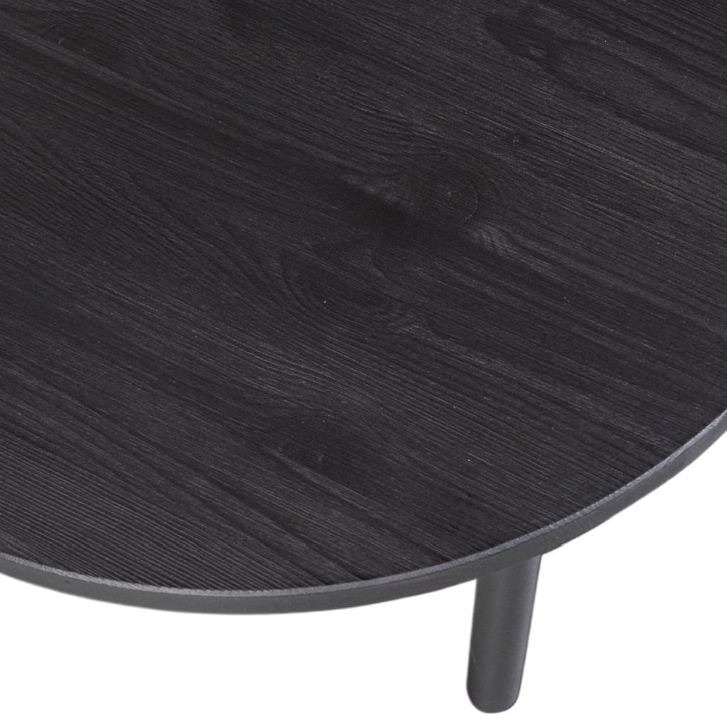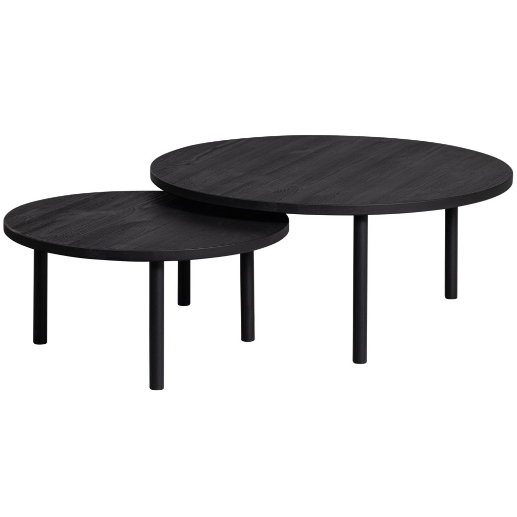 Designový konferenční stolek LAUT od holandského výrobce kvalitního nábytku WOOOD. Krásný stolek s kulatou horní deskou z borovicového dřeva s FSC certifikátem v černé barvě. Stůl se skládá z krásné kulaté desky s průměrem 80 cm. K desce jsou připevněny 4 dřevěné nohy černé barvy, které zajišťují perfektní stabilitu.