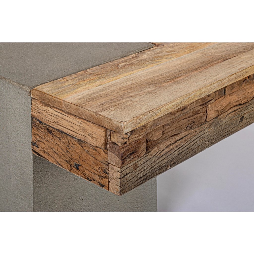 Konferenční stolek MANCHESTER od italského výrobce stylového nábytku BIZZOTTO. Stolek je velmi zajímavý kousek a je složený z více materiálů. Vrchní deska je z mangového dřeva. Zbytek desky je tvořen recyklovanými kusy dřeva, zde mohou vznikat menší prasklinky a díky tomu je každý výrobek unikátní a originální. "Šedý kvádr" je dřevo pokryté cementovou vrstvou. Černé nohy jsou z kovu.