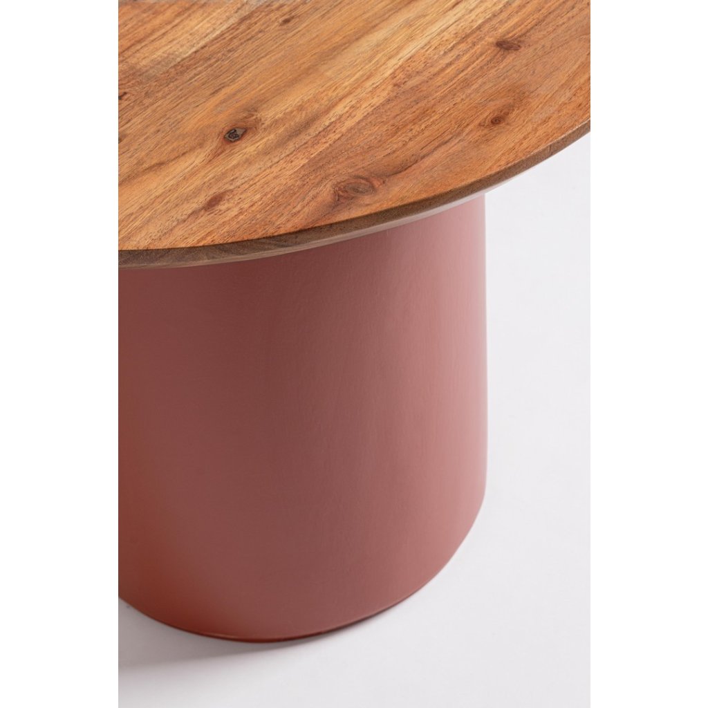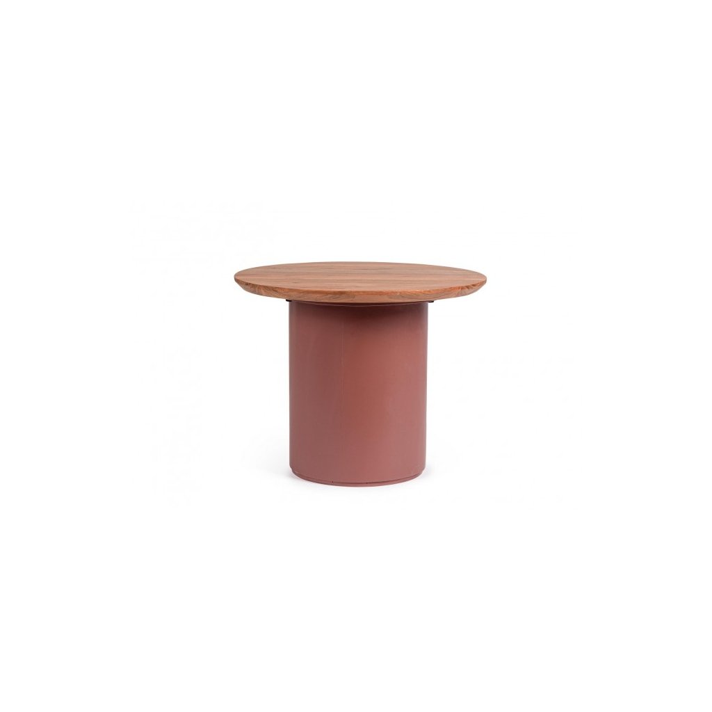 Stylový konferenční stolek OJAS od italského výrobce designového nábytku BIZZOTTO. Krásný a elegantní kulatý stolek tvoří spodní masivní válcová noha v hnědé barvě, na kterou navazuje dřevěná kulatá deska s průměrem 55 cm. Celý stolek je vyroben z akáciového dřeva.