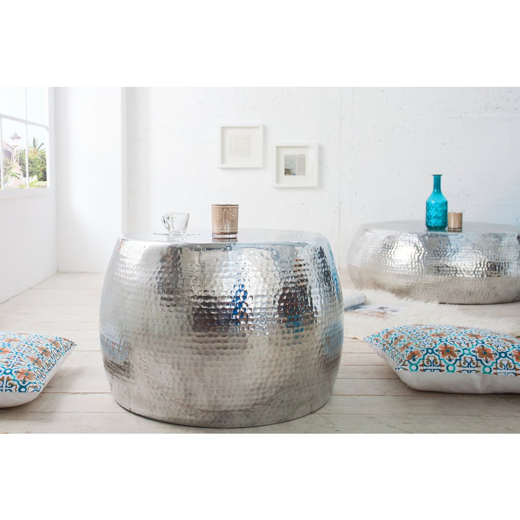 Designový konferenční stolek ORIENT od německé značky designového nábytku INVICTA. Stolek je opravdu nádherný výrobek, který je ručně vyroben z hliníkového plechu ve stříbrném provedení a jednotlivými díry po údery kladivem. Díky průměru 60 cm poskytujete dostatek prostoru na kávu, TV ovladač a další potřebnosti. Hliník je velmi lehký a tak nebude těžké se stolkem manipulovat.