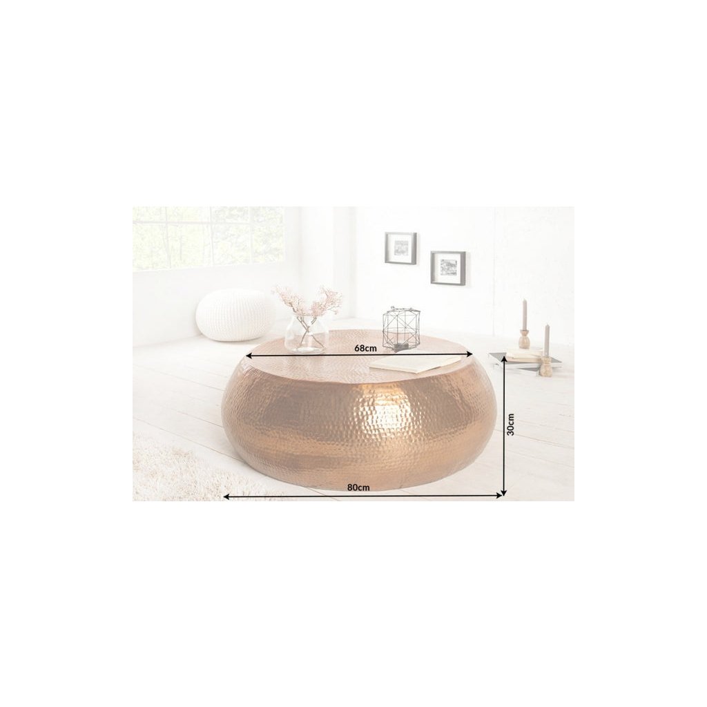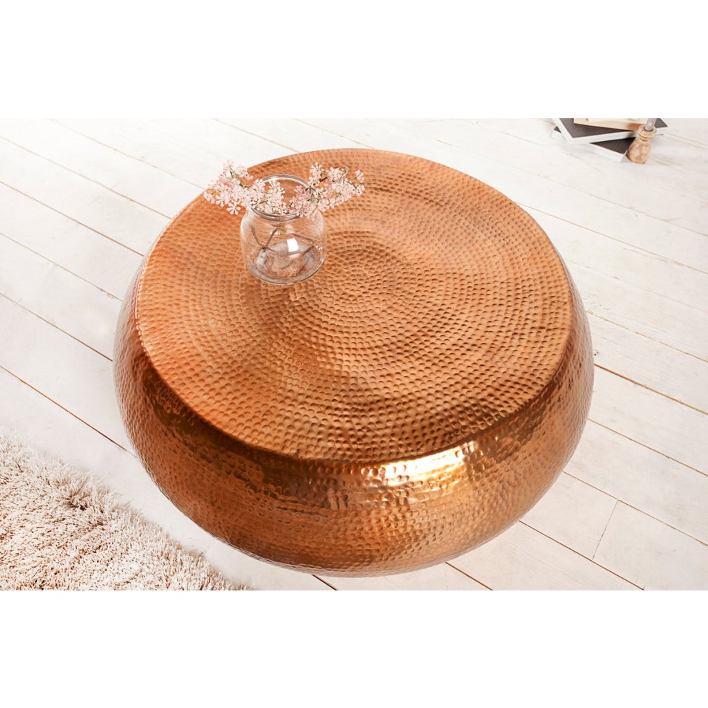 Designový konferenční stolek ORIENT od německé značky designového nábytku INVICTA. Stolek je opravdu nádherný výrobek, který je ručně vyroben z hliníkového plechu v měděném provedení a jednotlivými díry po údery kladivem. Díky průměru 80 cm poskytujete dostatek prostoru na kávu, TV ovladač a další potřebnosti. Hliník je velmi lehký a tak nebude těžké se stolkem manipulovat. K dostání i v menším provedení.