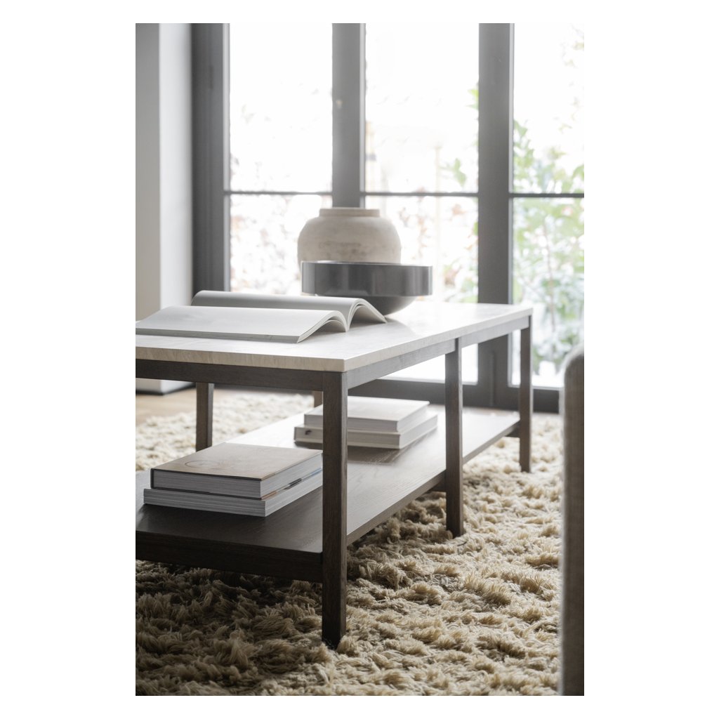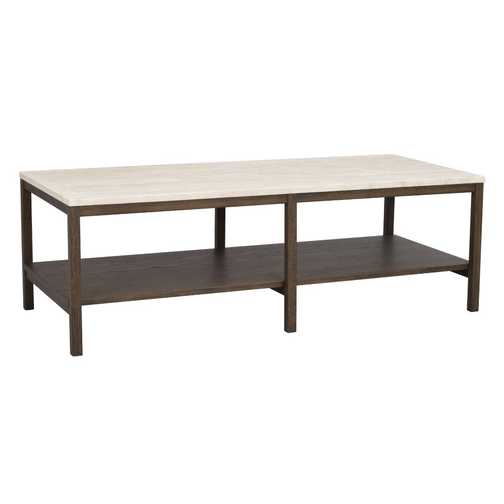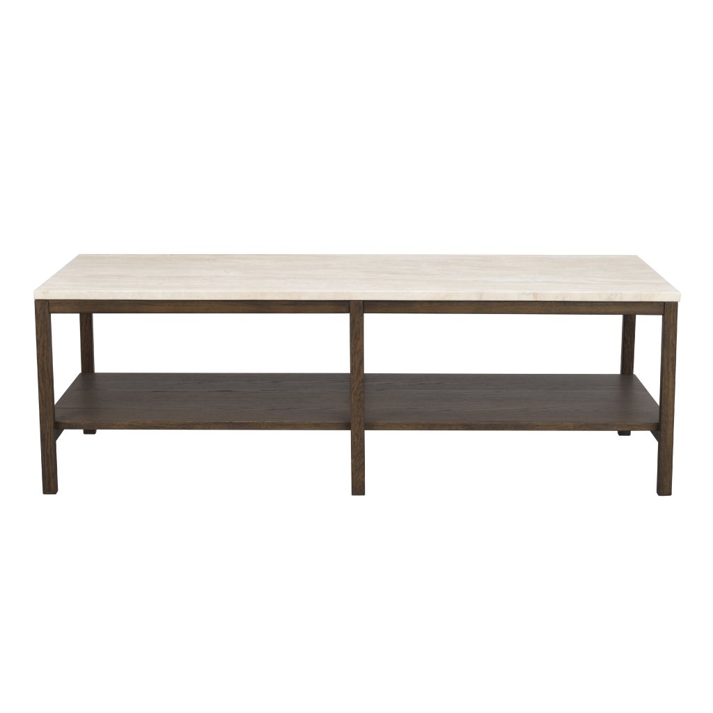 Konferenční stolek ORWEL od švédského výrobce designového nábytku ROWICO. Stolek ORWEL tvoří exkluzivní kamenná deska z travertinu a rám z hnědého lakovaného dubu, který zajišťuje maximální stabilitu, nosnost a pevnost. Travertin je druh vápence s nádhernou zářivou texturou, která stolku dodává přirozenou krásu. Stolek má certifikát FSC, což značí ekologicky získané dřevo. Skvěle stolek využijete ve vaším obývacím pokoji k pohovce. Stolek má velmi praktickou polici, která se bude hodit na dekorace nebo knihy.